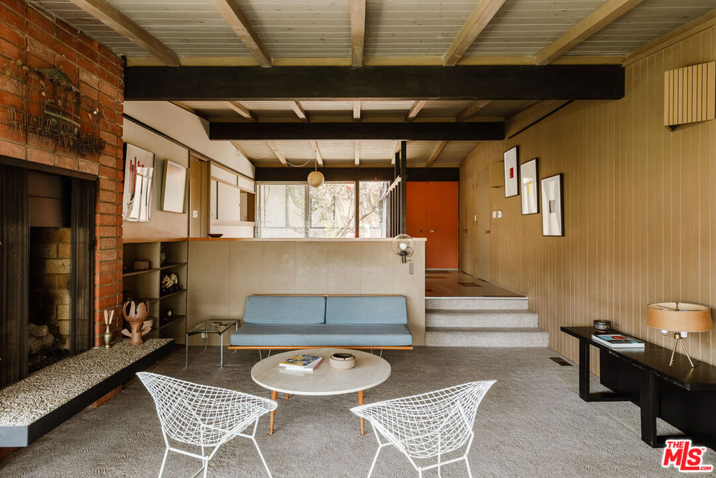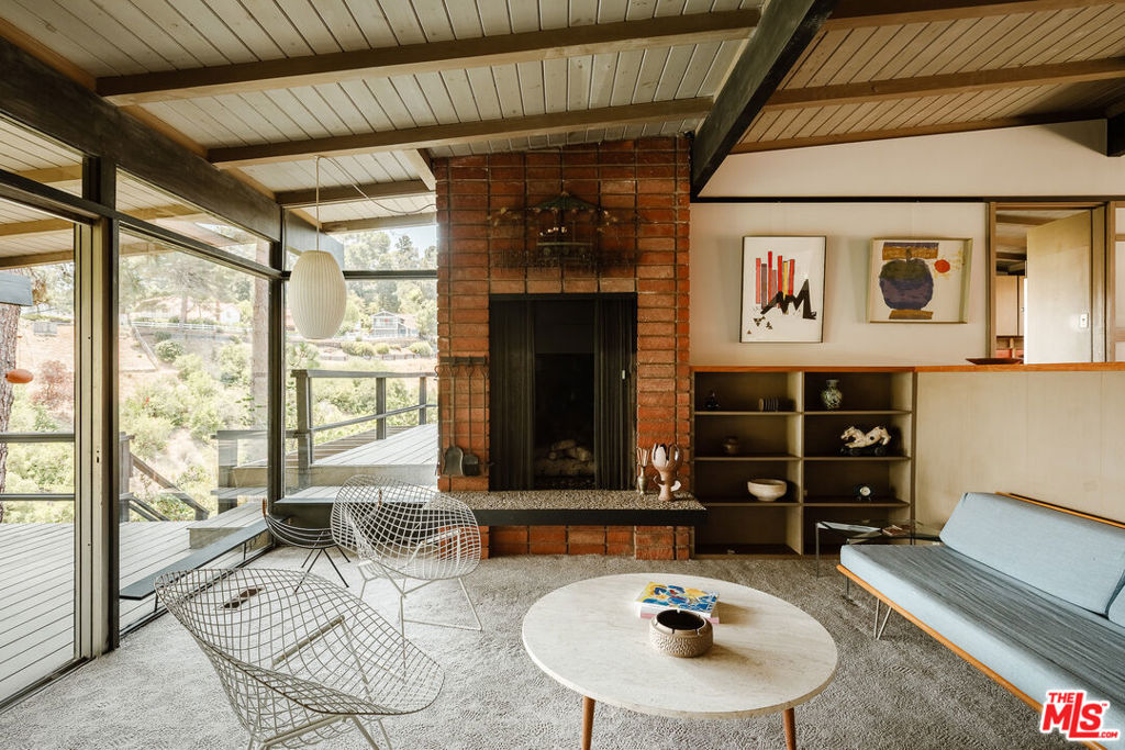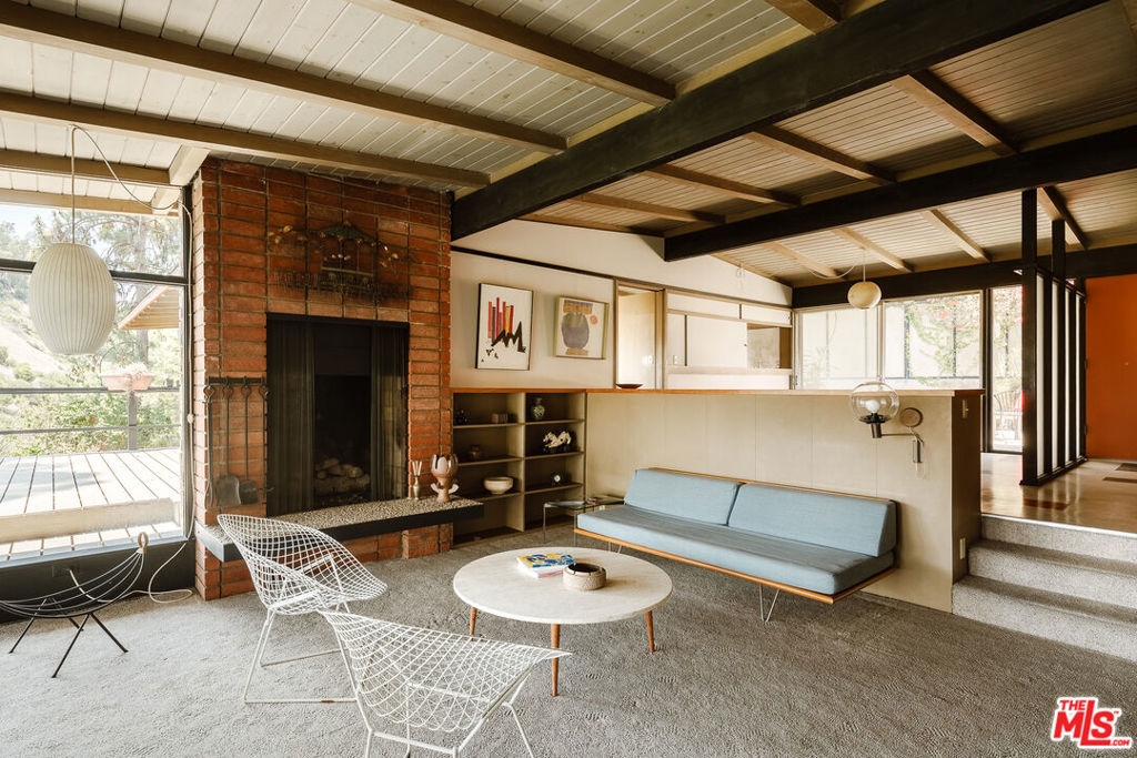 The Mitchell Residence, by architects Buff, Straub & Hensman (1959). Offered for only the second time since built- this distinctive and lovingly cared for home remains miraculously in almost entirely original condition. Situated on more than an acre in Rolling Hills Estates, the house embraces a tranquil and incredibly private setting with expansive floor to ceiling glazing. Recent update- two large ficus trees have been removed from a neighbor's yard opening up sweeping views of Mt. Baldy, Mt. San Gorgonio, Downtown Long Beach, the International Gateway bridge, coastline, and ocean. Morning light floods the home, and at nightfall, an array of twinkling lights illuminate expansive views of the city below. Exterior and interiors have been blended together seamlessly, with living spaces and adjacent decks placed amidst the towering pines to bring nature into every room. A split level delineates the open plan dining area, family room, and kitchen from the sunken living room and its monumental fireplace with cantilevered mantle. The details are exceptional: signature post and beam vocabulary, translucent glass screening, original light fixtures, and clever and abundant built-in cabinetry. Mature California native plantings populate the surrounding gardens. An idyllic canyon retreat with panoramic city, mountain, and ocean views, ocean breezes, and a sense of solitude that belies its close proximity to the vibrant beach communities nearby.