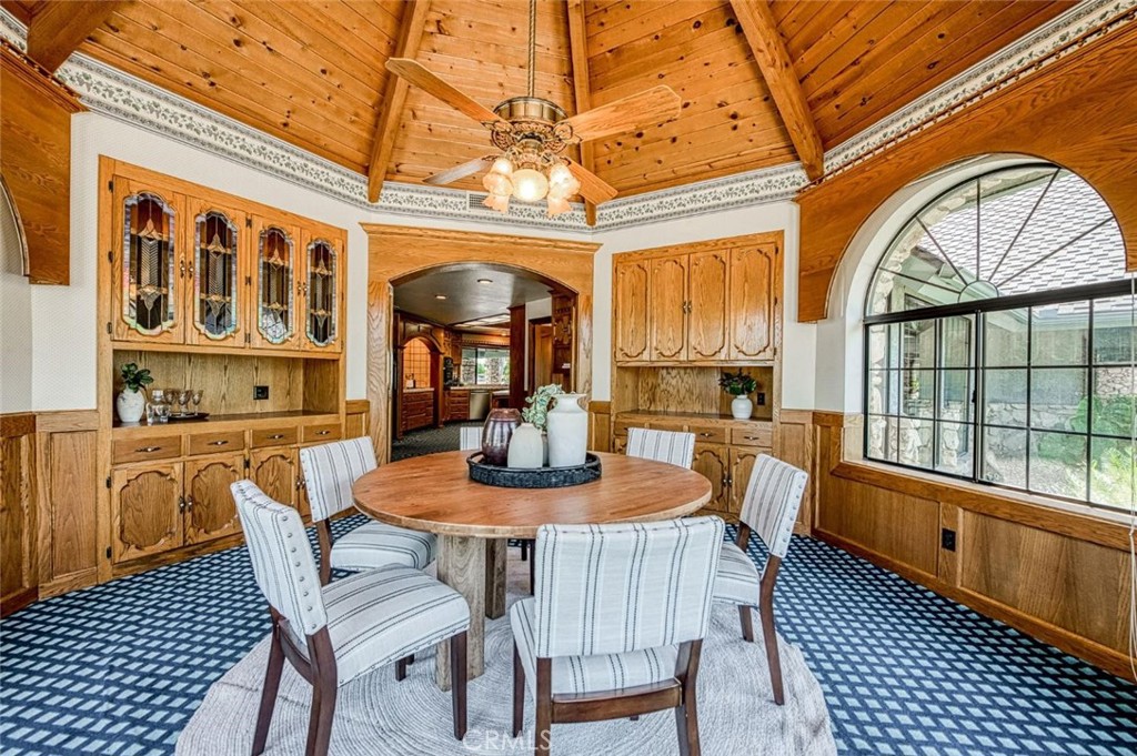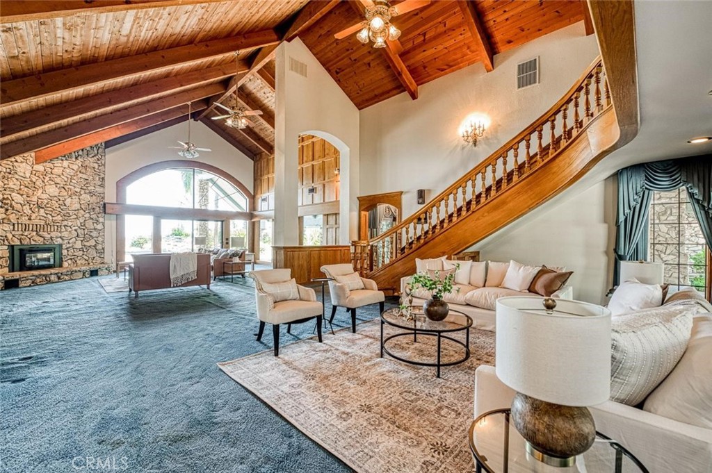 Artfully Designed Luxury Meets Resort Living on 2 Acres. Set alongside the 3rd hole of Belmont Country Club, this 6,538 sq ft custom estate is a masterclass in craftsmanship and design. Step through grand double doors into a soaring barrel-ceiling entry, where tongue-and-groove ceilings, arched passageways, and floor-to-ceiling windows create a sense of space and light. The formal dining room features handcrafted woodwork and serene views of lush greenery. Designed for both everyday comfort and unforgettable entertaining, this home offers 4 bedrooms, 3 full baths, 2 half baths, a formal living room, family room with a dramatic stone fireplace wall, and a game room. Throughout the home, you'll find extensive custom stonework, including floor-to-ceiling stone columns and a striking stone entry wall that makes a bold first impression. Outside, your private paradise awaits complete with a resort-style pool, fountain, gazebo, changing room, and mature orchard producing apples, tangelos, apricots, persimmons, grapefruit, and more. A garden area invites farm-to-table living. Additional features include a 2024 HVAC, cedar-lined closets, dual-pane windows, a 3-car garage, RV garage, and pull-through covered parking near the front entrance. Every inch of this estate speaks to thoughtful detail, timeless design, and elevated living.