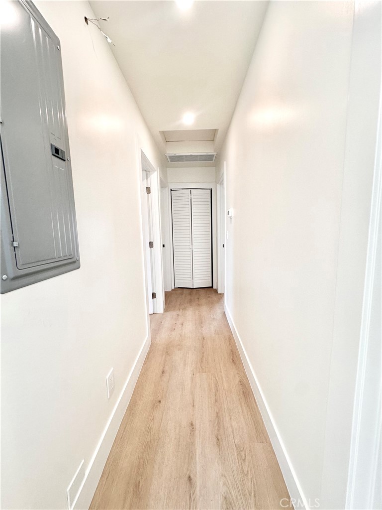 Brand-new 3-bedroom, 2-bath detached home offering approximately 1,000 sq ft of thoughtfully designed living space, situated on its own private 4,000 sq ft lot in central Duarte. Designed with privacy, natural light, and modern living in mind, the open-concept layout includes vaulted ceilings, a skylight, and durable scratch-resistant vinyl plank flooring throughout. The kitchen includes quartz countertops, shaker-style cabinetry, a porcelain farmhouse sink, stainless steel hood, garbage disposal, pull-out spice rack, corner lazy Susans, and hidden trash storage. The primary suite features a walk-in closet and sliding door access, creating seamless indoor-outdoor flow to a private patio. The en-suite bathroom offers a walk-in tiled shower with built-in niche. A second full bathroom includes a soaking tub with tile accents. Additional highlights include central heating and air conditioning, in-unit washer and dryer hookups, and dual sliding doors from both the kitchen and bedroom that open to separate outdoor spaces. The gated yard features mature fruit trees and low-maintenance hardscaping. Enjoy the comfort and privacy of single-family living with no shared walls and a dedicated private entrance. Located just minutes from Downtown Monrovia’s shops, restaurants, and entertainment, as well as Target, Walmart, Smart & Final, ULTA, HomeGoods, 24 Hour Fitness, and multiple dining options. Convenient access to freeways and public transportation. A rare opportunity to enjoy comfort, privacy, and convenience in a beautifully built home.