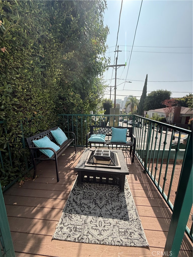 Discover this beautifully updated and spacious 1-bedroom, 1-bath apartment in the heart of West Hollywood! Nestled in a quiet, well-maintained building, this stylish unit features rich dark cherry-colored laminate flooring in the living room and bedroom, accented by custom shutters that add a touch of elegance. The kitchen is thoughtfully designed with granite countertops, a tiled backsplash, and includes a 4-burner stove and refrigerator—perfect for any home chef. Enjoy added comfort with ceiling fans, a wall-unit A/C, and a furnace for year-round ease. The bathroom features beautiful Spanish tile, a beveled glass door, and a full shower/tub combo for a spa-like feel. Relax on the patio/deck with seating and a cozy fire pit, offering lovely views. A community laundry room adds extra convenience. Located just minutes from Hollywood and Sunset Blvd, you’ll be near LA’s best restaurants, shopping, and nightlife. Don’t miss your chance to live in this chic, centrally located West Hollywood gem!