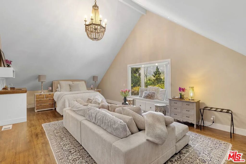 Located in the highly sought-after, guard-gated Serra Retreat, this 5-bedroom, 4-bathroom home offers peaceful living with beautiful canyon views. The gated front yard leads to a cozy, welcoming interior with spacious living areas that flow seamlessly onto a large deck, ideal for relaxing or entertaining while taking in the surrounding natural beauty. A guest house with a separate entrance on the lower level provides additional privacy and flexibility for guests. A private pool sits quietly in the backyard, perfect for a refreshing dip or simply enjoying Malibu's tranquil atmosphere. With its serene setting and prime location, this home provides the perfect balance of comfort and exclusivity. This home is furnished.