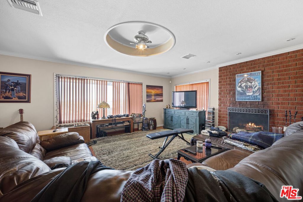 Be king of the hill with dominion over 6.4 acres of prime land offering panoramic views above Sunset Heights -- on the market for the first time since the 1960s, before the neighborhood around it existed. The two-bedroom traditional home in the middle of the parcel is ideal for expansion but also enjoyable as-is. Enter through the large dine-in kitchen or a living room door that opens to the spectacular views above Sierra Highway, which look truly majestic from the large outdoor patio space. There's also a detached recreation room facing the patio for relaxing and entertaining. Current owners access the fenced portion of the property through a paved driveway that leads to a carport, or a second gate that opens to the expansive flat yard along Ridge View Drive. The parcel itself extends southward along Ridge View across open space and continues behind existing homes; it also stretches northward behind existing homes to yet another open clearing alongside Linda Vista Street. Ultimately, this is a legacy property allowing for the construction of multiple homes with million-dollar views -- perfect for a family compound, an owner who needs a ton of space in close proximity to urban amenities, or a buy-and-hold play to take advantage of Santa Clarita's continued growth and development.