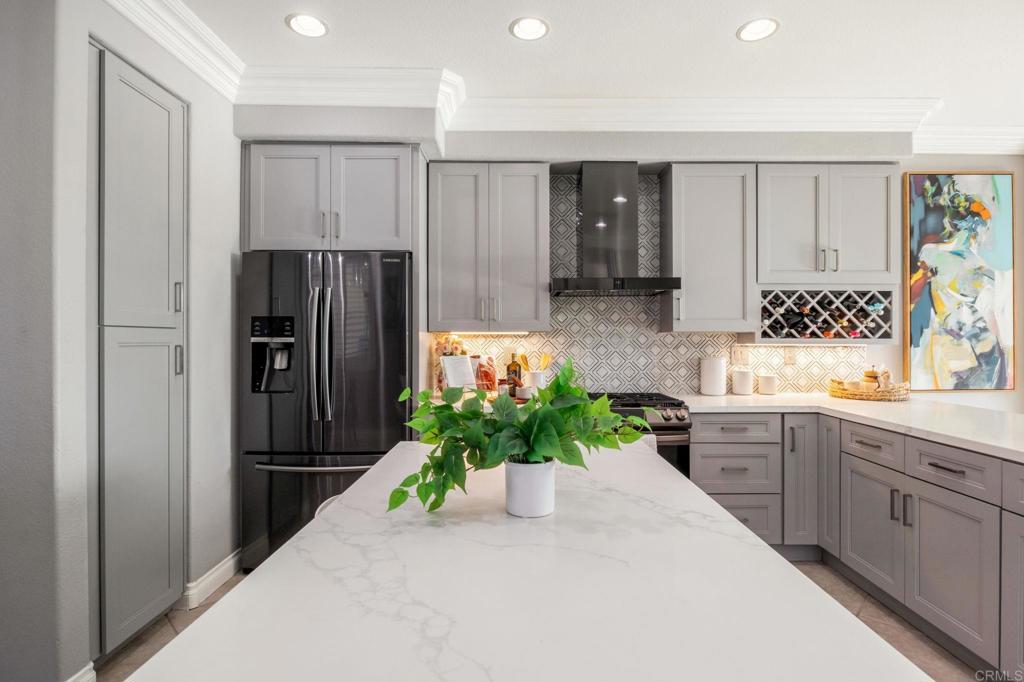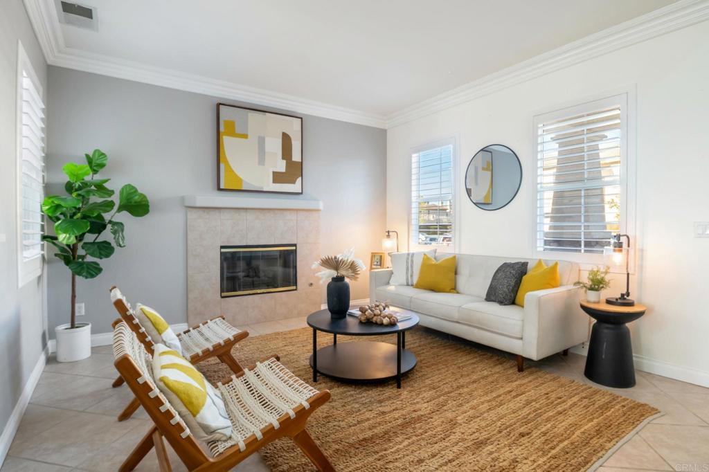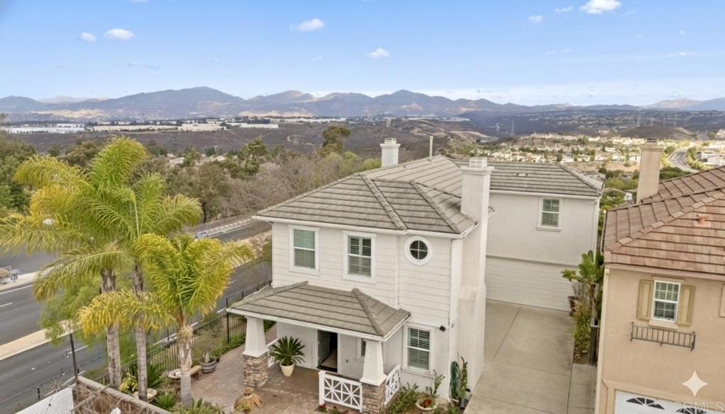 Stunning canyon and mountain views take center stage in this beautifully maintained 3-bedroom home, perfectly positioned on a desirable corner lot in the sought-after Versante neighborhood. The open floor plan is light and bright, enhanced by fresh paint and crown molding throughout. The fully updated kitchen boasts sleek quartz countertops, modern fixtures, brand-new appliances, and a stylish island with waterfall countertops. A brand-new water heater adds convenience. Upstairs, the spacious primary suite features an oversized balcony to take in even more of the stunning views, creating the perfect retreat. The upper level has been upgraded with luxury waterproof vinyl plank flooring for a modern and durable touch. Noise-blocking windows and sliding doors help minimize outdoor sound, while maintaining the home's airy ambiance. Ample parking ensures convenience for you and your guests. With only 27 homes in this close-knit community, the property is truly unique and features a pleasant picnic area maintained by the HOA. Located in the highly desirable Scripps Ranch area, this home provides access to top-rated schools in both the Scripps Ranch and Poway Unified School Districts. Enjoy the perfect blend of comfort and accessibility, with shopping, dining, entertainment, and the 15 freeway just minutes away!
