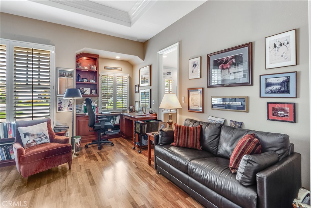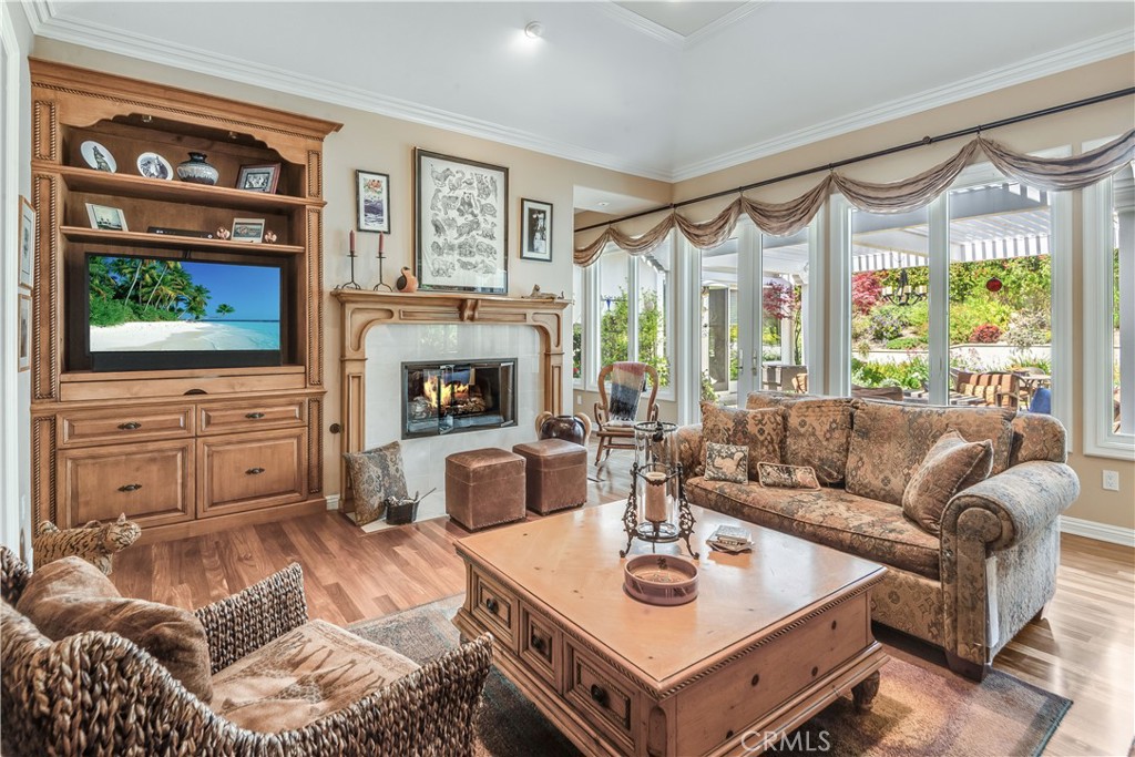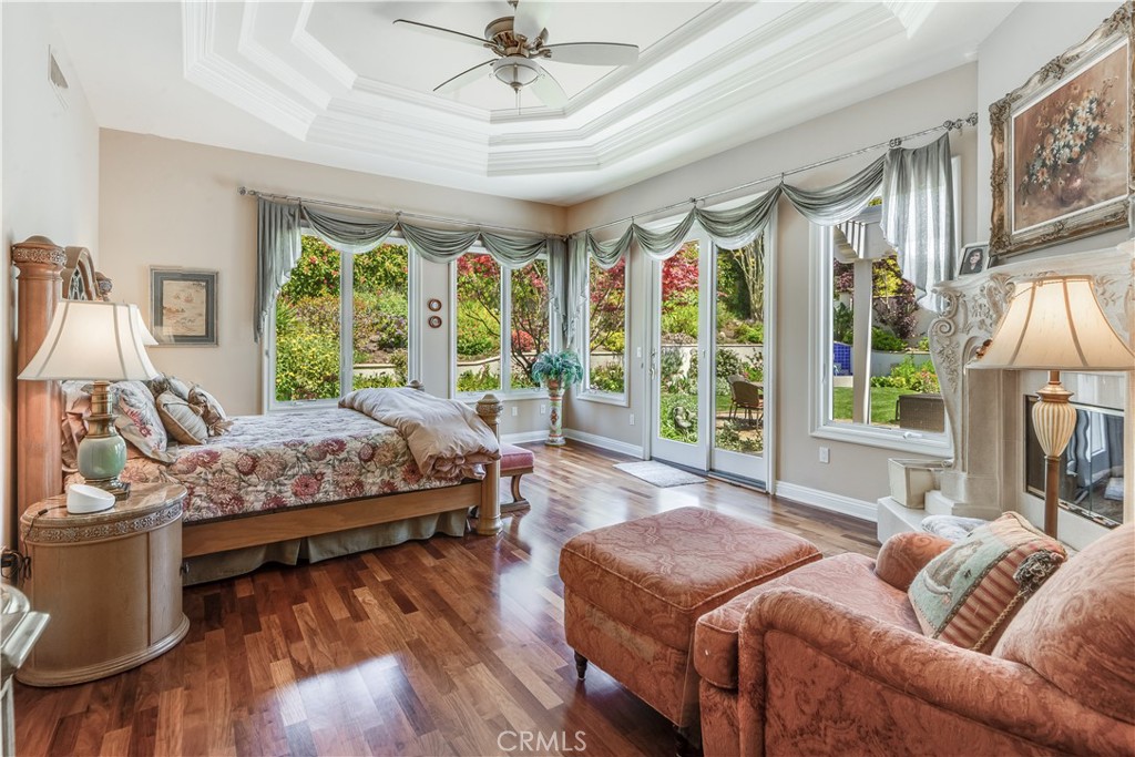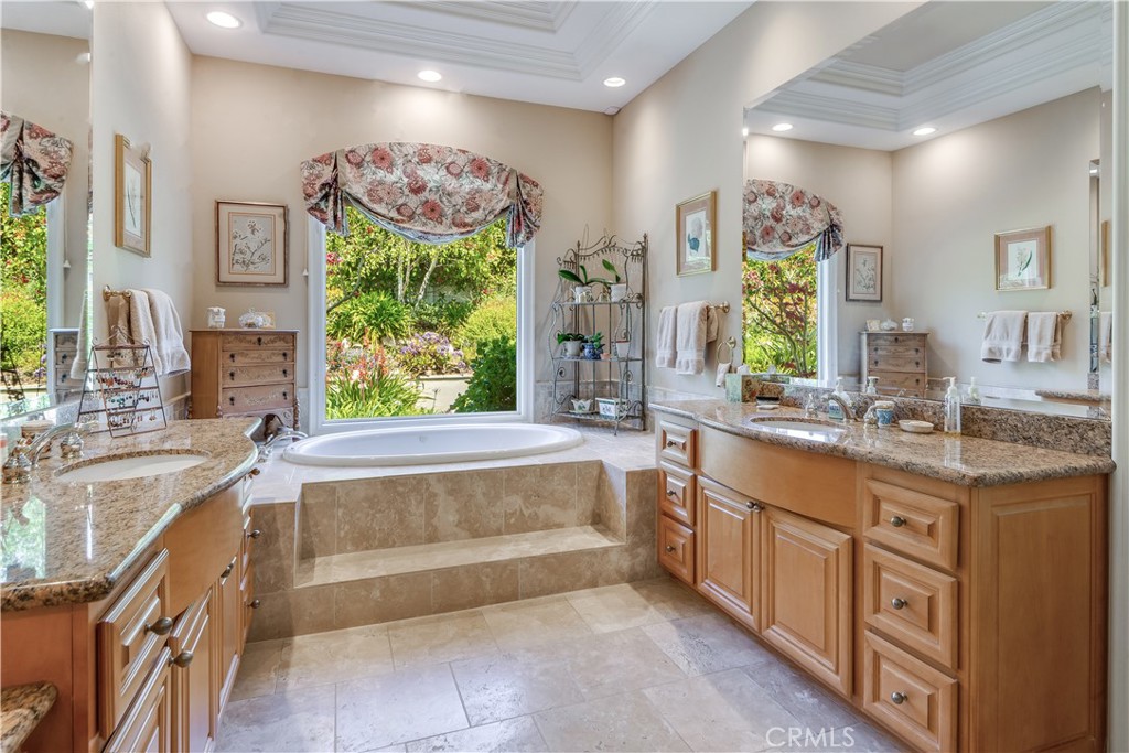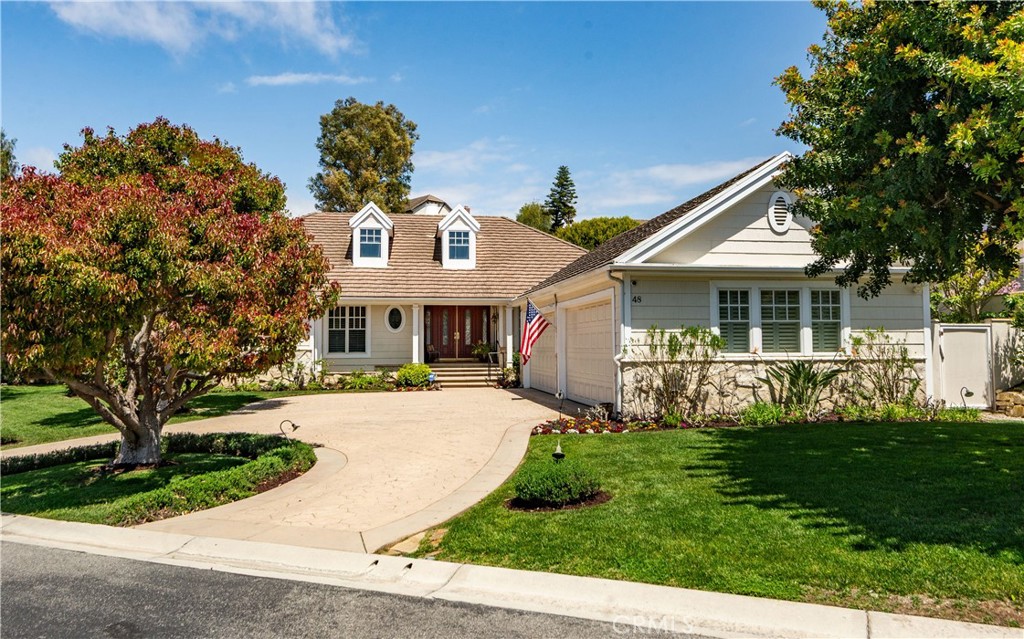 RARE OPPORTUNITY! First time on market in 25 years, beautifully maintained with pride of ownership from the original owner! Your chance to own and enjoy this single-level luxury turn-key residence nestled in the prestigious guard-gated community of Vantage Pointe. This exquisite property, one of only 67 homes in the development, offers 4 bedrooms and 3 ½ baths in 3,334 square feet of living space on a 16,962 sq ft oversized flat lot, located on a quiet cul de sac. Upon entering, you'll be greeted by an inviting open floor plan with high ceilings throughout. Straight ahead is the spacious living room featuring elegant custom coffered ceilings, hardwood floors, a fireplace, and large windows that fill the space with natural light, creating a warm and welcoming atmosphere. Off the living room is a sitting room, with the same hardwood floors, and shares the back side of the fireplace. French doors from the living room open to a back patio with a recently-built pergola with portable fire pit, a built-in BBQ, lawn area and beautifully manicured garden, and a tranquil fountain – perfect for outdoor entertaining. From the entry foyer, to the left, after passing the guest powder room near the entry, are the private living quarters featuring three well-appointed bedrooms, including an optional office, and a secluded luxurious master suite. Two of the bedrooms share a Jack-and-Jill bathroom for added convenience. The primary suite is secluded, while taking advantage of the beautiful backyard, and features two giant walk-in closets, access to the back patio, a fireplace, and an en-suite bathroom with dual vanities, a walk-in shower, a jacuzzi tub, and a separate toilet room with a bidet. Off the entry foyer and living room area, the gourmet kitchen is a chef's dream, equipped with two ovens, two microwave ovens, two dishwashers, a Sub-Zero refrigerator, ample cabinetry, and granite counters, and includes a separate breakfast nook overlooking the backyard. Off the kitchen is a dedicated laundry room with sink and storage, that leads to the 4-car garage, with plenty of cabinets for storage, and includes a workbench. The home includes a 6-camera security system and whole-home water filtration system. This exclusive community is conveniently located near stores, Golden Cove Shopping Center, Terranea Resort, and world-class golf and tennis clubs. Schedule a private tour today to experience the exclusivity, luxury and comfort that 48 Santa Cruz has to offer.