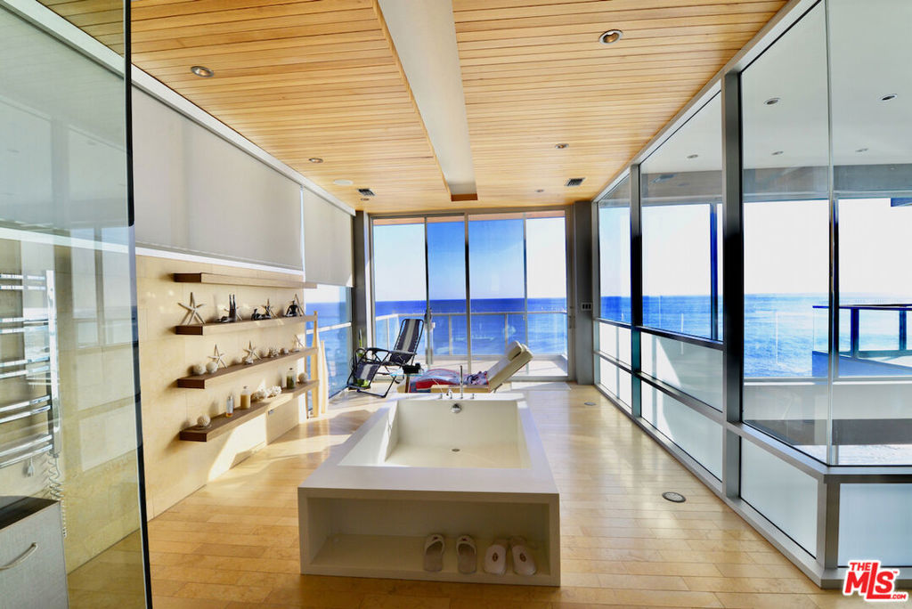 Step into the ultimate Malibu lifestyle with this breathtaking tri- level beachfront home, prominently featured in Sex & the City. Located on the highly coveted Malibu Road, this architectural masterpiece was designed by the renowned Jay Vanos and truly takes your breath away.Expansive glass balconies create a seamless, transparent living environment, allowing panoramic ocean views to flow effortlessly throughout the home. The entry level has been recently redesigned to add even more square footage, enhancing both style and function.The contemporary kitchen is a chef's dream, featuring top-of-the-line appliances, Caesar- stone countertops, and elegant travertine floors. The exquisite master suite and spa-like bath offer a private sanctuary, while a spacious entertainment room with a wet bar, maid's quarters, and a 2-car garage complete this sophisticated coastal retreat.Truly sexy, sophisticated, and unparalleled in design- this home embodies the essence of modern Malibu luxury. Available now- experience it for yourself!