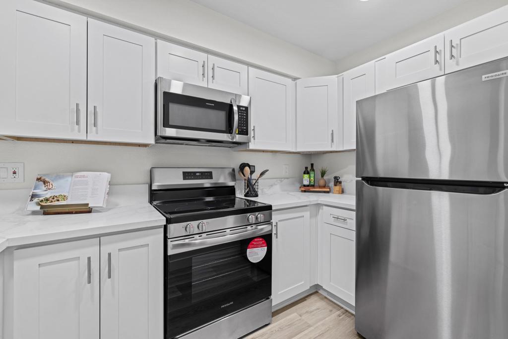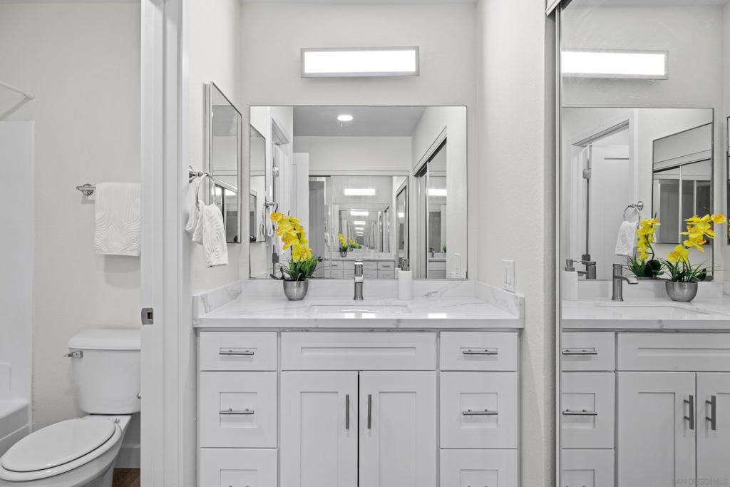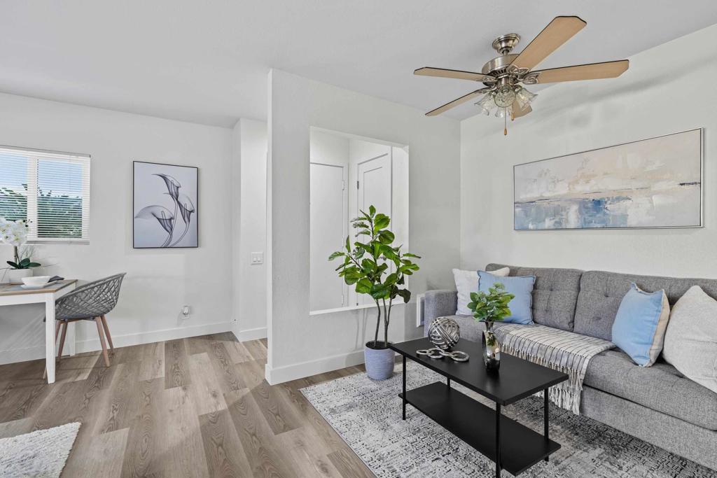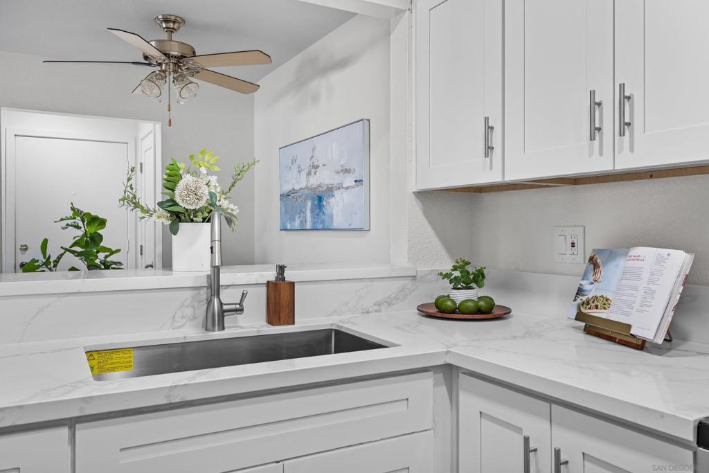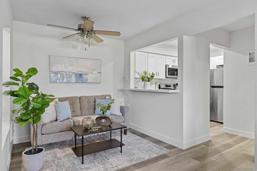Live in the heart of Mission Valley in this beautifully upgraded studio! Step inside to a bright, open living and sleeping area, featuring fresh LVP flooring, a large sliding glass door to your private patio, and an additional window that floods the space with natural light. The spacious patio, enclosed by tall privacy fencing, creates a serene retreat perfect for morning coffee or evening unwinding. Inside, the dining area flows seamlessly into the fully remodeled kitchen, complete with crisp white cabinetry, sleek Quartz countertops, and brand-new stainless steel appliances. The bathroom mirrors the kitchen’s modern design with matching cabinetry and Quartz countertops, a shower/tub combo, and a generous closet for extra storage. Enjoy resort-style living with community amenities including a sparkling pool and spa, BBQ area, clubhouse, and convenient on-site laundry. With one assigned parking space and unbeatable access to shopping, dining, and the scenic San Diego River Trail, this Mission Valley gem offers both comfort and convenience.
