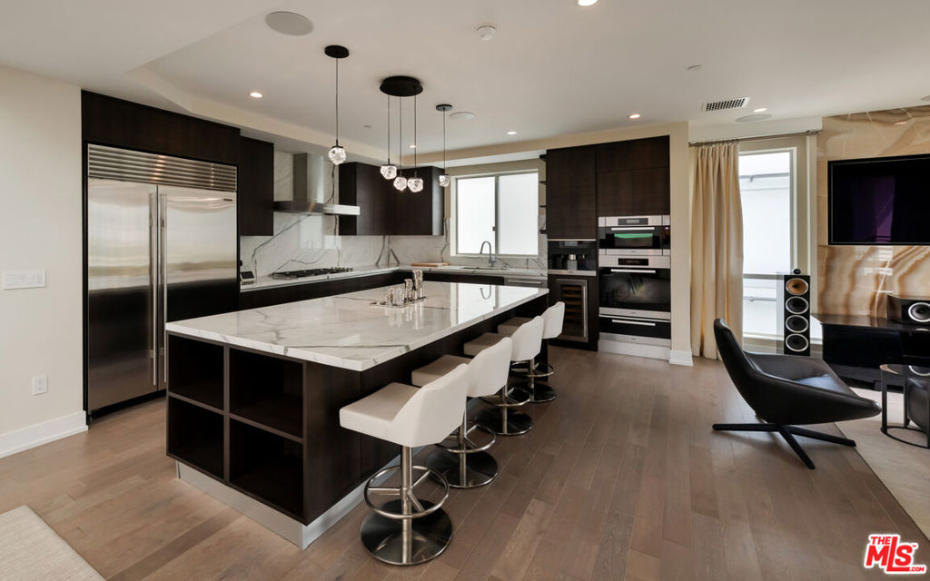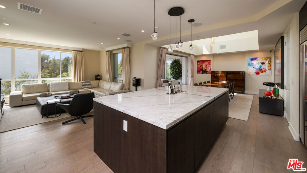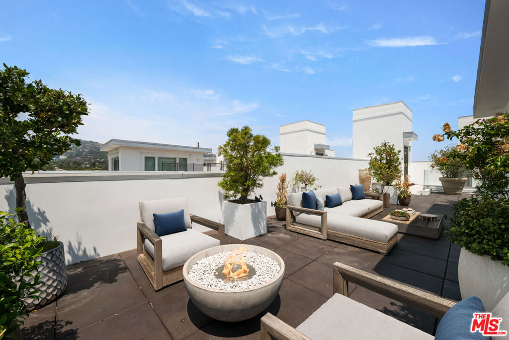 Penthouse 501 at 460 N Palm Drive delivers Beverly Hills luxury with unmatched style. This 3-bedroom, 4-bath residence offers direct elevator access, expansive living and dining areas, and a chef's kitchen with marble finishes and professional appliances. The primary suite features a spa-like bath, custom walk-in closet, and private terrace access. An exclusive spacious rooftop crowns the home, complete with multiple lounges, a fire feature, outdoor kitchen, dining space, and spa - set against sweeping city and hillside views. Additional features include en-suite bedrooms, laundry room, smart home integration, three secure side by side parking spaces, private storage, and access to a fitness center and 24-hour concierge.