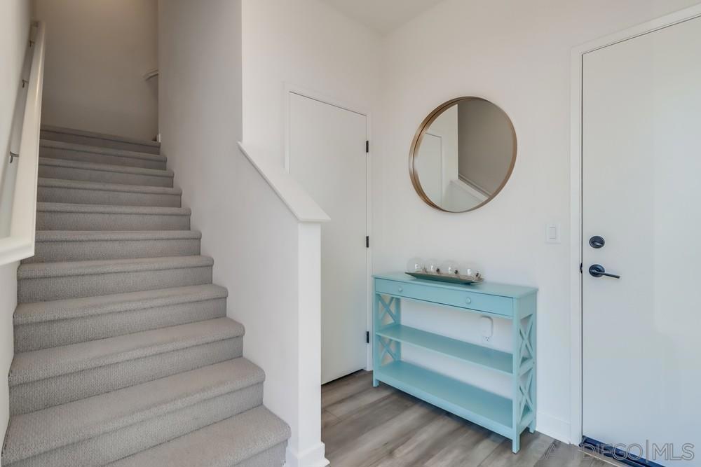 Check out this 2-bedroom, 2.5-bathroom home that’s got style, comfort, and efficiency all rolled into one. And guess what? It comes with a fully paid solar system, so you can forget about energy bills and save a ton in the long run. The first level has an attached two-car garage for safe parking. Upstairs, the open-concept main living area is a dream come true with luxury laminate flooring, Mordern countertops, stainless steel appliances, and modern white cabinetry. On the upper floor, you will discover two generously sized bedrooms. The primary suite boasts a spa-inspired bath, walk-in shower, dual sinks, and an ample walk-in closet. The second bedroom accommodates its own full bath with a tub-shower combination, making it suitable for guests or family members. Just a stone’s throw away from top-notch schools, shopping centers, military bases, and all the goodies San Diego has to offer.