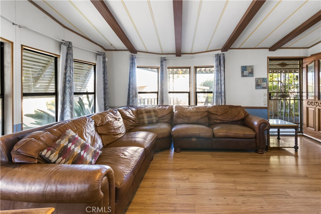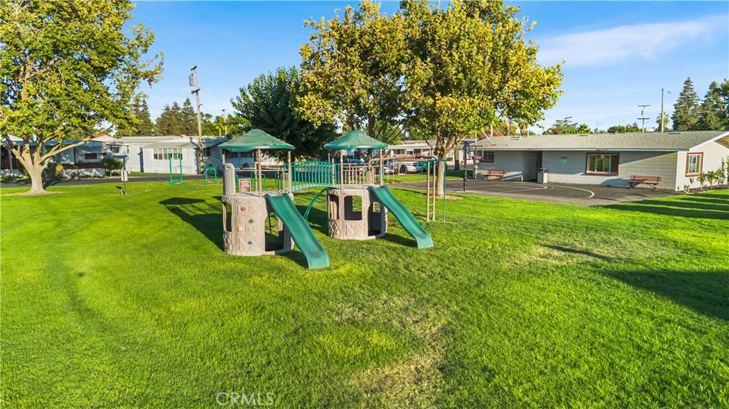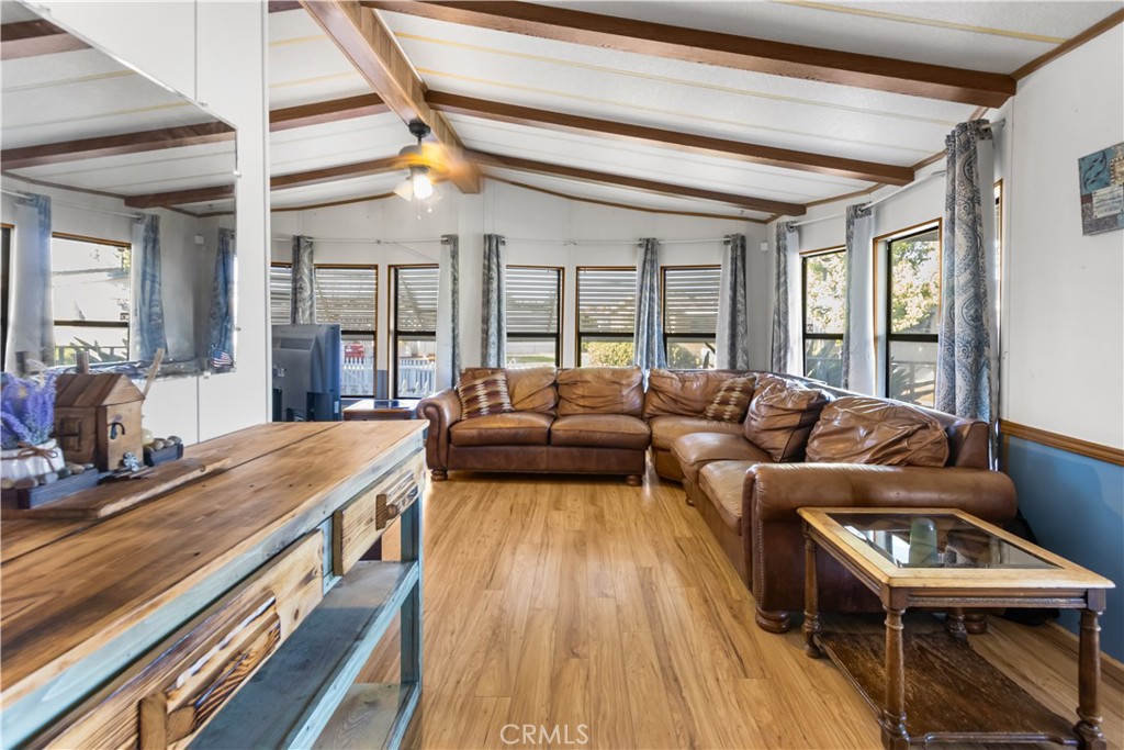 Set on a desirable corner lot in an all-ages sought-after park! the park fees of $853 reflect the added value offering safe and well-kept neighborhood! this 2 large bedrooms, 2-bath double-wide welcomes you with a covered front porch that invites morning coffee or relaxing evenings. Step inside and you’ll find laminate flooring flowing through a sun-filled living room. A dining area opens into the heart of the home—a bright kitchen with plenty of cabinetry and counter space. Outside, is a detached garage sits apart from the home giving you independent space for your vehicles, storage and a small workshop. As part of well-maintained family park, residents have access to clubhouse, sparkling pool, community library, playground, dog park, on-site laundry, and the golf course is in walking distance! Don't miss this move-in-ready home with a detached garage. Schedule a private showing today and experience all that this family-friendly community provides!
