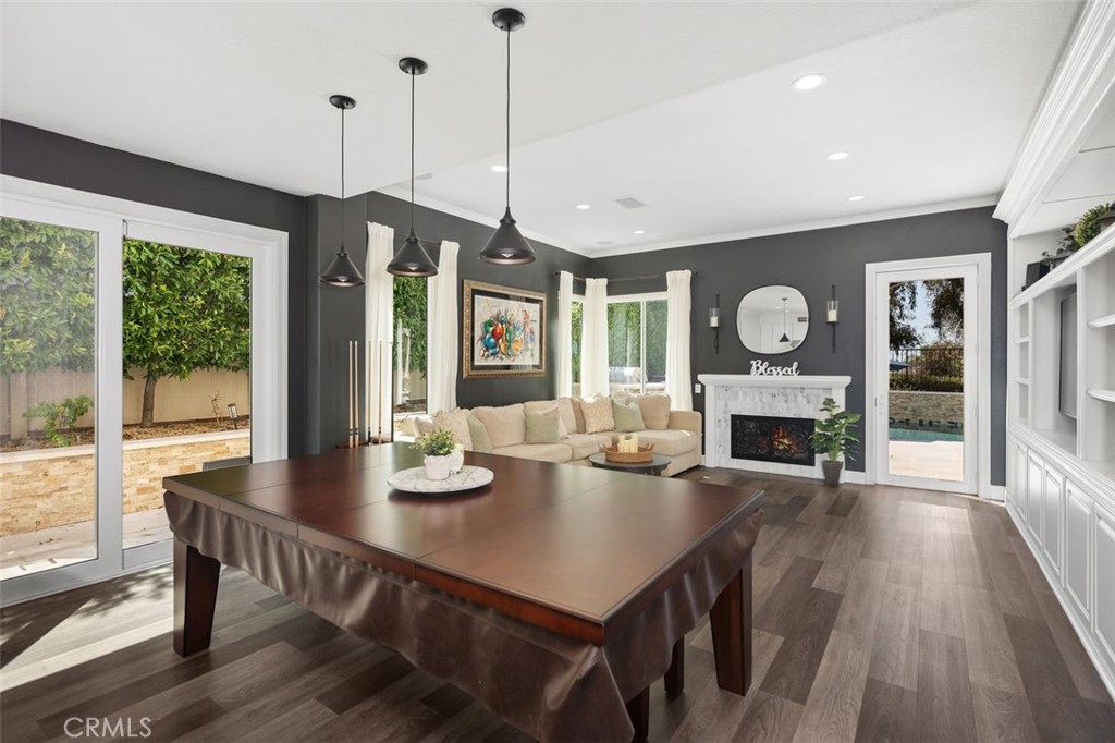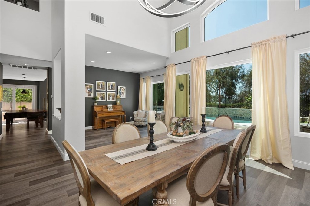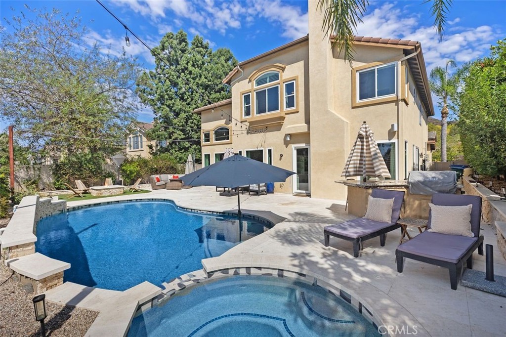 Beautiful Las Flores Home with Endless Upgrades, an Entertainer's Backyard and Amazing Sunset Views! This 5 bedroom and 3 bathroom home with a 3-car garage and a resort-style pool/spa boasts cathedral ceilings, wood laminate flooring, owned and paid solar, house fan, Anlin windows, electric blinds, remodeled kitchen, ceiling fans, recessed lighting, tankless water heater, water softener/carbon filter, repiped and more! The remodeled kitchen opens to the family room and includes a large island, stainless steel appliances, stone countertops, wood cabinets, water filter with reverse osmosis and plenty of storage. The family room includes a cozy fireplace, beautiful built-ins and opens to the huge backyard. The living room and dining room are very spacious with cathedral ceilings, custom chandelier and many windows for natural light. The downstairs bedroom is currently being used as an office with amazing wood cabinet built-ins. The beautiful staircase with wood railings leads you up to the secondary bedrooms and primary bedroom. The primary bedroom is very spacious with double doors, tall ceilings, large closets and a primary bathroom with dual sinks, large bathtub and walk-in shower. The 3-car garage includes epoxy flooring, two paid Telsa batteries, two 220 volt high efficiency EV chargers and air conditioning perfect for a gym. The entertainer's backyard is a dream with a granite BBQ island with seating, recently remodeled resort-style pool and spa with added additional lighting and a tanning shelf with in-pool umbrella, a relaxing fire pit with gas line, wired and installed speakers by Sonos and unlimited sunset views! This home also includes amazing community amenities: pool, tennis court, sport court, picnic areas and more! Close to schools, restaurants, parks, fwys and toll roads. This beautiful home has it all! (click onto the 360 icon under the map to see the amazing drone video)