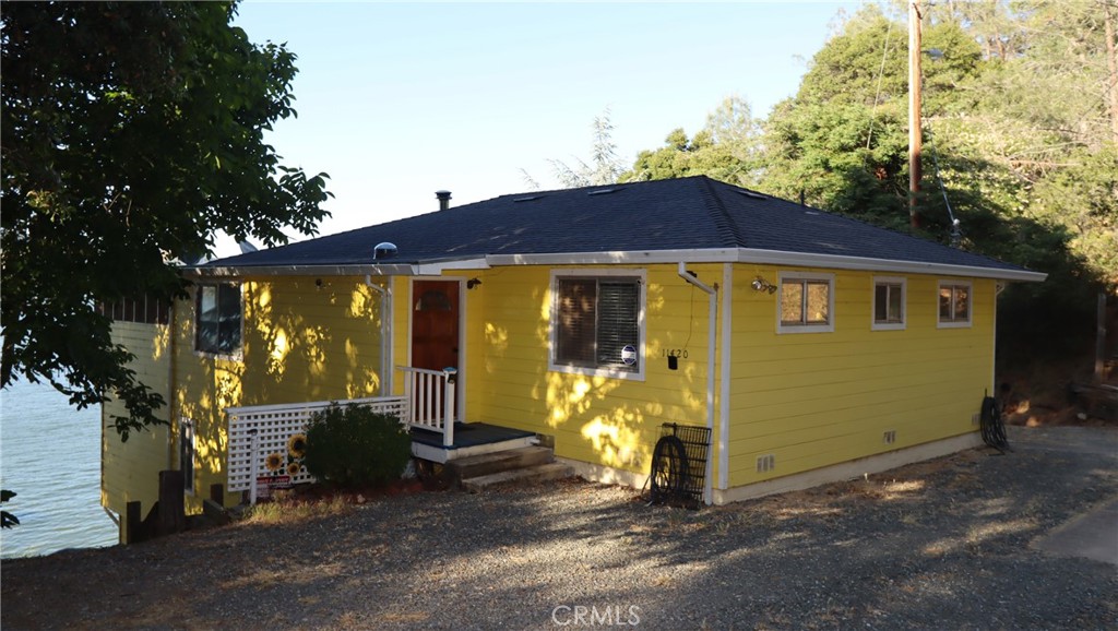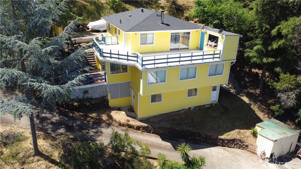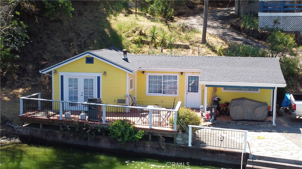 LAKEFRONT WITH TWO HOMES Five bedroom, two bath main home, one bedroom, one bath guest house. Covered dock, boat slip with winch, 100 ft water frontage on a deep water cove with no neighbor on one side. Perfect family-sized vacation getaway or permanent home, with potential for income with separate guest home for either short or long term. Laminate flooring, tile baths, custom concrete counter tops. Wood stove with natural stone backdrop. Family room for games and movies. Wrap around decks opening off the living room, including an outdoor deck bar to take in the spectacular natural location with total seclusion and quiet. This is the place where you can really let go, on your own, or with friends and family. Memories to be made here. Move in ready, wrap around decks. Brand new roofs on both homes. Catch fish from your own property, or easily get out on the water and explore California's largest natural lake within its borders.