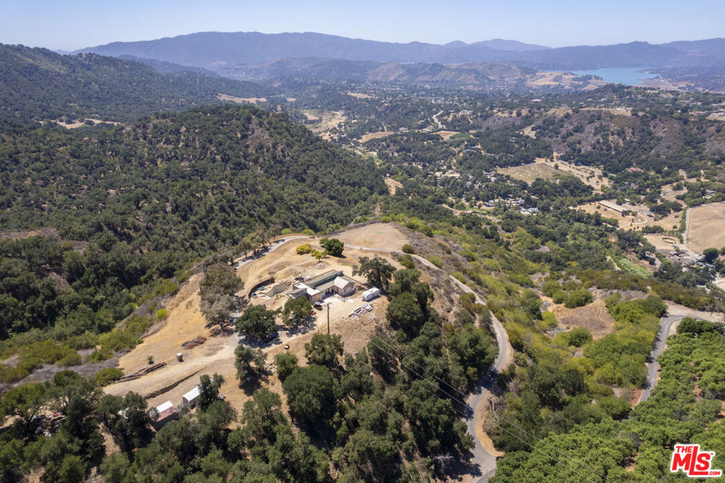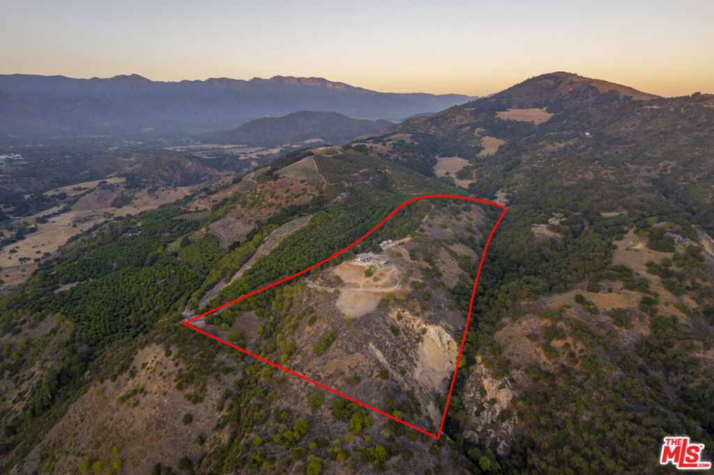 A serene 40-acre private-gated ranch property on the historic Rancho Del Cielo, located just 10 minutes from Downtown Ojai, with 360-degree views of the Ojai Valley, Lake Casitas, and breathtaking hillsides sprinkled with wild flowers, majestic oaks, and citrus agriculture. Situated on the property, with Southwest orientation by design, with views to the infamous Chief Peak mountain range towards Topa Topas sits a thoughtfully designed home, in process of completion, that features new ground up 'Net Zero Bauhaus' architectural fire-resistant construction and insulated with industrial hemp. One foot thick walls, creating a space that is breathable, non-toxic (no mold), regulates humidity, delivers high acoustic value and more. 2,370 SQ FT open floor-plan with 19 foot ceilings throughout, and features 2-bedrooms / 2-bathrooms, custom and dramatic size windows, and 800SQFT deck space with panoramic views. The property also hosts a pond for swimming and to serve as back-up water storage, a golf tee green overlooking the valley, and an environment conducive for vineyards, fruit orchards, lavender, agave, and more. A truly special offering,not often available in one of Califorinia's most majestic settings.
