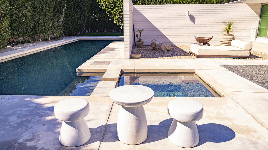 Paulette Johnson HausExperience timeless mid-century modern living in the heart of Palm Desert.Designed by renowned architect Walter S. White, this historic home exemplifies clean lines, floor-to-ceiling glass, and effortless indoor-outdoor flow -- the essence of desert modernism.This residence is fully furnished with custom designer interiors by Garrett and Garage. The chef's kitchen features high-end appliances, sleek cabinetry, and an open layout perfect for entertaining. Two spacious bedrooms and two elegant baths offer comfort and privacy, while expansive glass walls frame dramatic mountain views, palm trees, and tranquil water features.The grounds are equally impressive:- Private pool and hot tub with shaded lounging areas- Covered cabana for outdoor dining- Bocce ball court and putting green for leisurely afternoons - Multiple fire pits for warm desert evenings under the starsLocated just minutes from El Paseo's world-class shopping and dining and only steps from The Living Desert and hiking trails, this home blends architectural pedigree with modern luxury -- an ideal retreat for discerning tenants seeking privacy, style, and convenience.