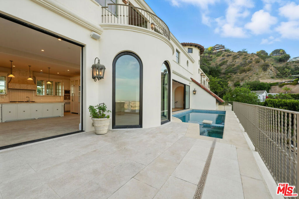 Set above the Chateau Marmont on a quiet cul-de-sac, this 6,687 square foot estate delivers scale, privacy, and unobstructed city views rarely found at this price. A dramatic two-story entry and sweeping staircase introduce the home, with an elevator connecting all three levels for seamless living. Twelve-foot ceilings, Euroline doors, and expansive glass frame panoramic vistas from nearly every room and open to multiple terraces and a mosaic-tiled pool and spa.The main level includes a large living room with terrace access, a formal dining area, and a chef's kitchen outfitted with Sub-Zero, Thermador, and Miele appliances. Upstairs, the primary suite offers 16-foot ceilings, a fireplace, steam shower, soaking tub, sauna, dual closets, and two private terraces positioned for sunrise and sunset views. Three additional en-suite bedrooms complete the floor.Additional features include a media room, office with its own terrace, interior laundry room, a tranquil garden with mature lemon trees, and a four-car garage with additional parking. Minutes from the Sunset Strip yet completely private, this home combines space, scale, and views in one of the most coveted pockets above West Hollywood. Flexible leasing terms.
