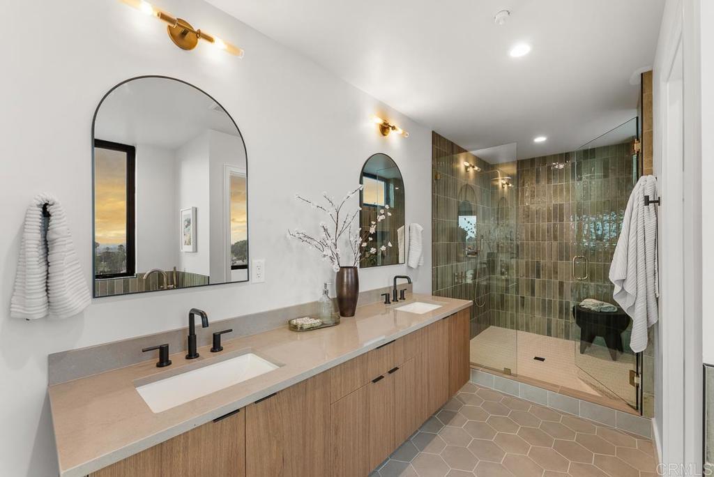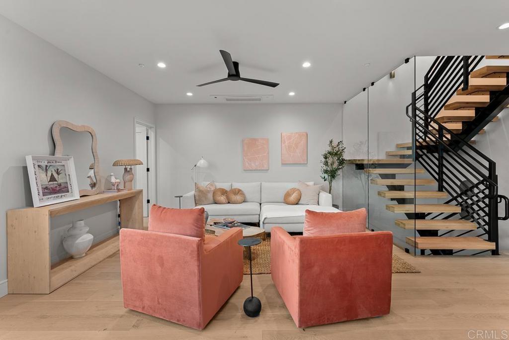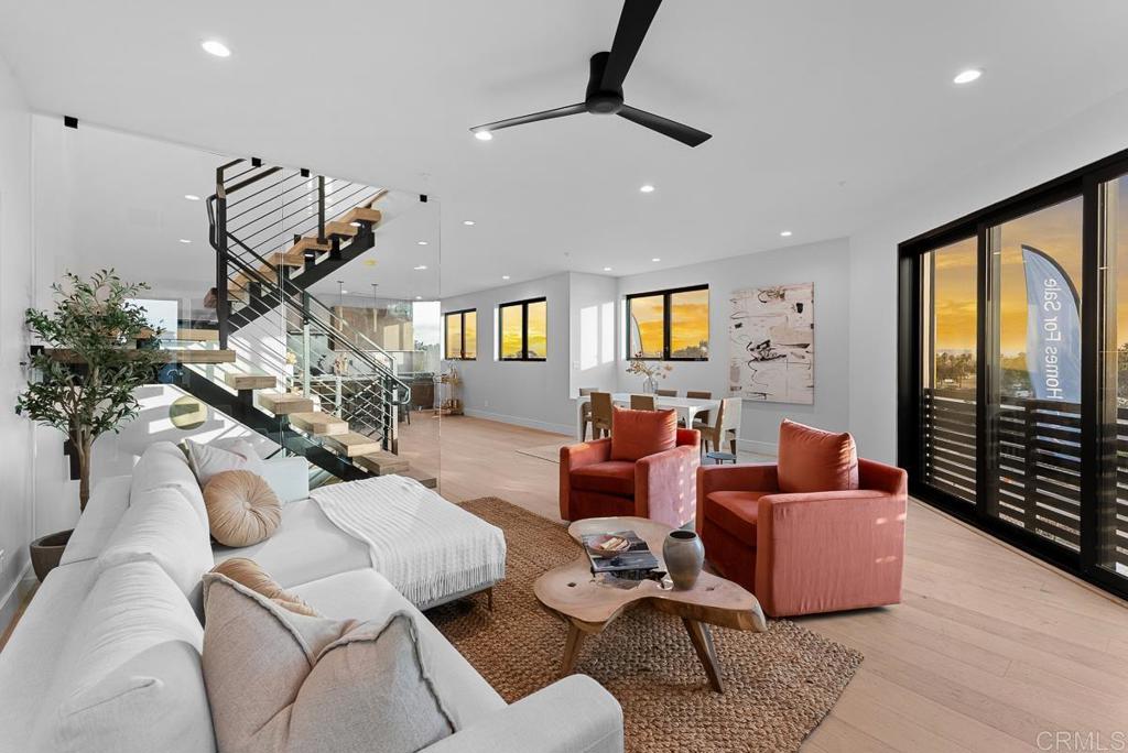 4224 is a premium corner unit with arguably the best views in the project! Enjoy dramatic sunsets over Mission Bay and fireworks in the summertime. 4224 features a spacious open concept layout with designer touches, including a large kitchen island, solid surface quartz countertops with matching backsplash, and custom inset European slab cabinets. Brushed gold kitchen hardware, Thermador appliances, floating iron staircases with custom glass work, engineered hardwood floors, and stylish lighting fixtures. Tons of natural light from oversized windows and floor to ceiling balcony slider doors. Spacious bedrooms all with on-suite bathrooms and three private decks totaling 154 sf. The 401 sf private garage (2 side by side parking spots) is set up for EV charging and home comes with owned solar. Comes with an upgraded home warranty (2-10 Home Warranty). Great central location provides easy access to transit, local dining, coffee shops, and the expansive Mission Bay Park, a 4,600-acre oasis perfect for biking, jogging, picnicking, and water sports. The expanded Blue Line (light rail), short walk away, connects to Downtown, UCSD, SDSU, UTC, Sorrento Mesa and beyond. Less than a 10 minute bike ride to USD. Project is VA approved.