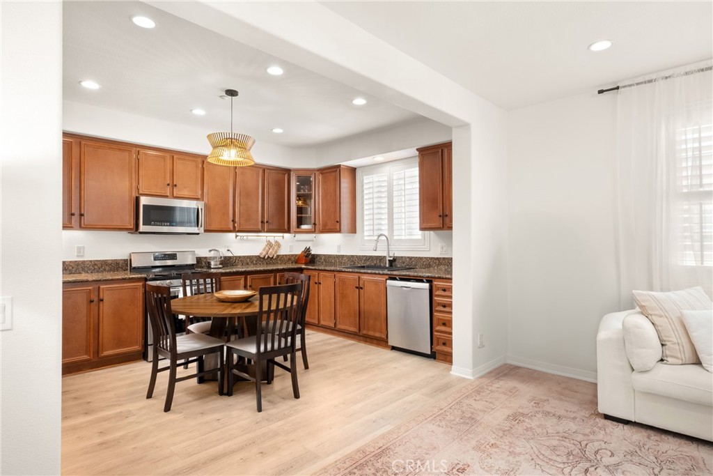 This highly upgraded and meticulously maintained end-unit townhome features 2 bedrooms, 2.5 bathrooms, and a 2-car attached garage with additional storage space. Step inside to a spacious living room featuring a custom fireplace, abundant natural light, and access to a private balcony — perfect for relaxing or entertaining. The open-concept kitchen is beautifully appointed with upgraded cabinetry, granite countertops, recessed lighting, and stainless steel appliances, seamlessly connecting to the living room. Throughout the home, you’ll find new laminate flooring, plantation shutters, and custom window coverings for a fresh, modern feel. The large primary suite boasts decorative shelving, a walk-in closet, dual vanities, and an oval soaking tub. A generous secondary bedroom includes its own full bathroom and a lovely view. Additional highlights include upgraded ceiling fans, tile flooring in the kitchen and baths, a spacious powder room, and a convenient upstairs linen closet. Enjoy the ease of direct access to a 2-car garage, plus the washer, dryer, and refrigerator are included. Located just one block from Ladera Ranch Elementary and Middle School, this home offers access to the incredible amenities of Ladera Ranch — including Founder's Park, pools, clubhouses, tennis and basketball courts, skate park, water park, dog park, scenic trails, and year-round community events. High-speed internet is included in the HOA. *This property is available for rent starting 8/1/26.* *This furnished lease is move-in ready and offers the ultimate combination of comfort, convenience, and community living.
