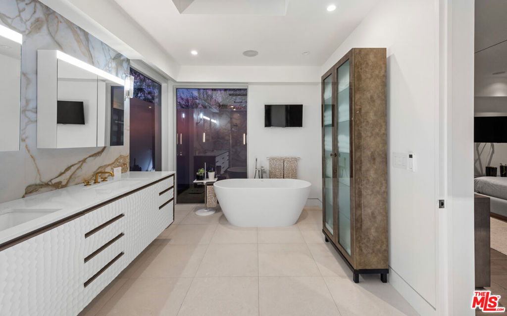 Exquisitely furnished!! Gorgeous, gated & private modern style home in the hills with a guest house. This fully furnished 5 bedroom & 6 bathroom beauty features an open layout, 12-foot-high ceilings, hardwood/stone floors & Fleetwood sliding glass doors. The gated entrance features a courtyard, waterfall and a large secure door. The serene panoramic views of the home compliment the great outdoor living space which includes a built-in BBQ & large saltwater pool & spa. Gourmet kitchen includes sleek Italian designed cabinets, top of the line appliances and a luminous skylight. Large bedrooms with en-suite bathrooms throughout, with tons of closet space made with the finest materials. Separate guest house /office/creative space with its own bathroom above the 2-car garage. Smart home equipped with Control 4.