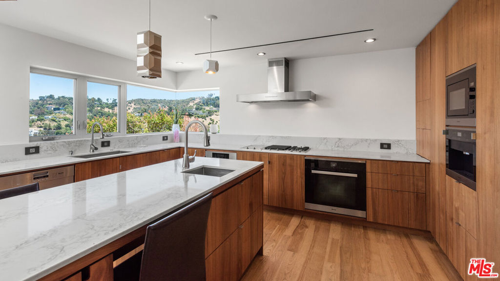 Fully furnished!! Walk into this partially gated Mount Olympus home with city & canyon views. Contemporary style & beautiful views make this an amazing place to call home. The home boasts one of the largest infinity pools in LA & includes 2 MASTER Suites. This 4 bedroom & 4 bathroom home offers a great spot for those looking to be close to the lights & action of the Sunset Strip & enjoy the luxury & beauty of the hills. A breathtaking zero edge infinity pool with spa makes this home one of a kind. The home includes hardwood floors, designer furniture, sliding glass doors, laundry room, walk-in closets, balcony & wet bar. An attached 2 car garage plus ample street parking on a wide street. SEE PRIVATE REMARKS