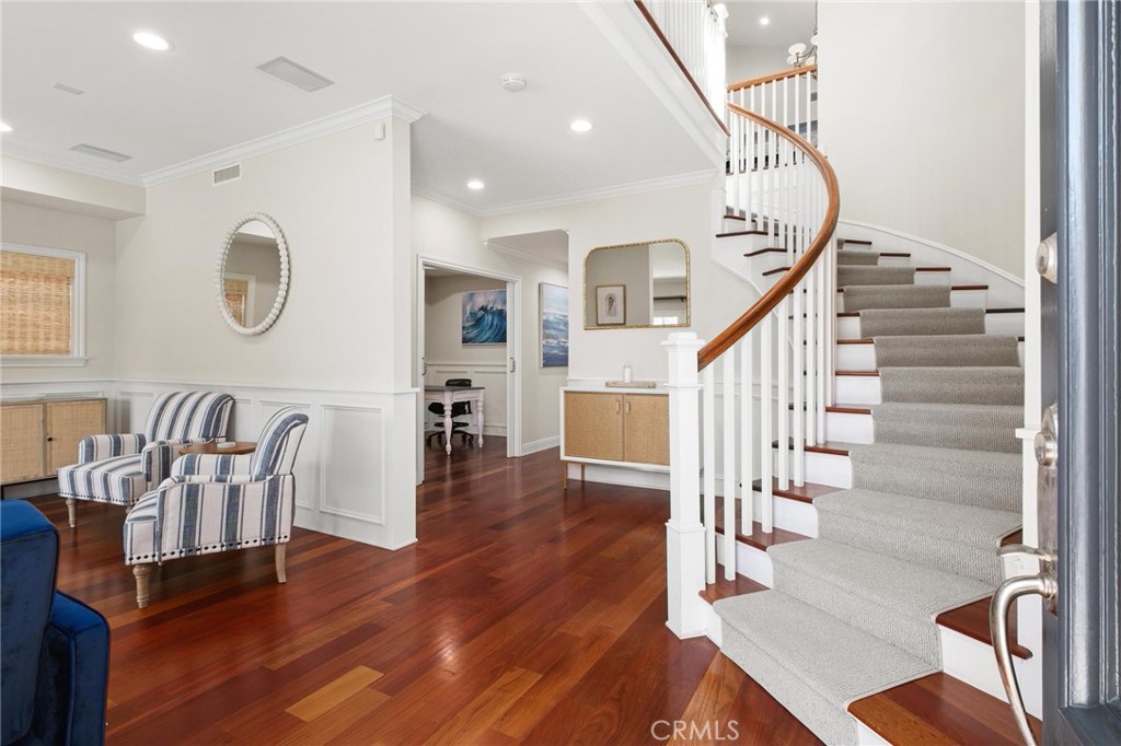 Discover the epitome of coastal elegance at 3306 Highland Avenue, a fully furnished 4-bedroom, 2-office, 4-bathroom masterpiece nestled in the heart of the coveted north Hermosa sand section. Perfectly positioned just blocks from the beach and steps from vibrant Manhattan, this Cape Cod-inspired residence seamlessly blends timeless sophistication with modern comfort, offering an unparalleled lifestyle for discerning tenants. Step inside to find soaring ceilings, Brazilian cherry hardwood floors, and abundant natural light that create a warm and inviting atmosphere. The gourmet kitchen, equipped with a Viking Professional range, granite countertops, and a spacious island, flows effortlessly into open living and dining areas adorned with elegant fireplaces, ideal for both intimate gatherings and grand entertaining. The luxurious primary suite serves as a serene retreat, featuring vaulted ceilings, a walk-in closet, a private deck, and an exquisite bathroom with a jacuzzi tub and frameless walk-in shower. This exceptional home is elevated by thoughtful amenities, including a 3-stop elevator, central air conditioning, and a two-car garage, ensuring convenience and comfort at every turn. The top floor offers a versatile bonus room, perfect as an office, or den, complete with a breathtaking ocean-view deck that promises to be a favorite gathering spot. Fully furnished and move-in ready, this residence is ideally suited for those seeking a seamless blend of style and functionality in one of Hermosa Beach’s most desirable neighborhoods, equidistant to lively piers and downtown areas.
