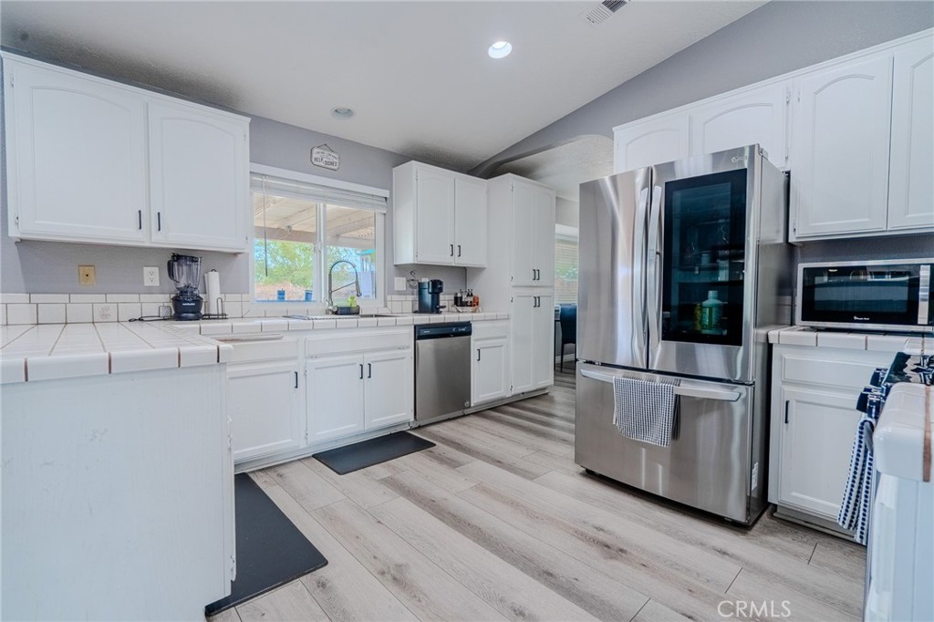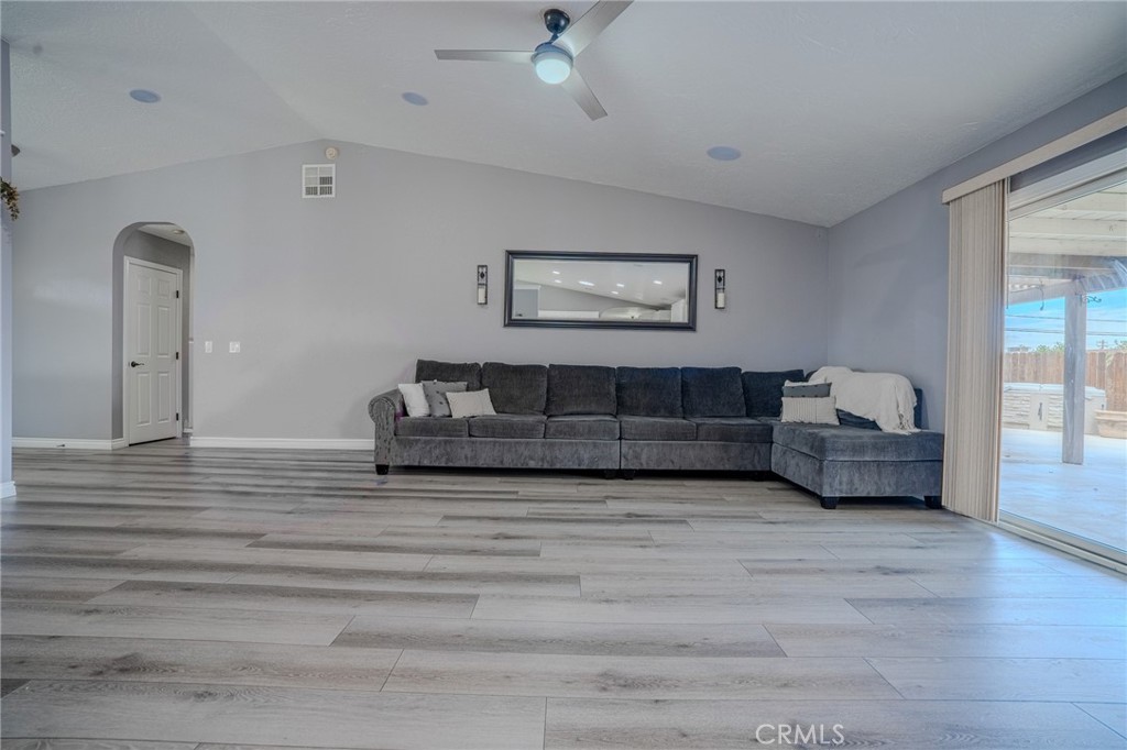Welcome to this charming single-story home in Hesperia, set on a spacious .65 acre horse property lot. The property is fully fenced with wrought iron and block wall, surrounded by mature shade trees, lush landscaping, and features leased solar panels to help you save for years to come, all paired with a convenient 3-car garage. Step inside and you’ll immediately notice the tall ceilings and open layout. The home offers a large living room with a double-sided fireplace, a cozy family room, a formal dining area, and a spacious kitchen with tile counters, stainless steel dishwasher and stove, recessed lighting, and multiple skylights for natural brightness. There’s also a breakfast nook with bay windows, an indoor laundry room with storage, and a guest-friendly half bath. The bedrooms are generously sized, each with ceiling fans, while the primary suite boasts direct access through a sliding glass door to the huge covered patio, perfect for enjoying desert sunsets, morning coffee, or weekend BBQs. The backyard features plenty of room to entertain all year long. This home checks all the boxes and won’t last long in today’s market. Don’t wait, make it yours before it’s gone!