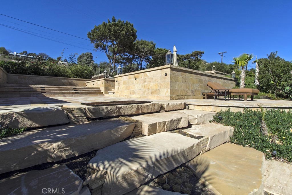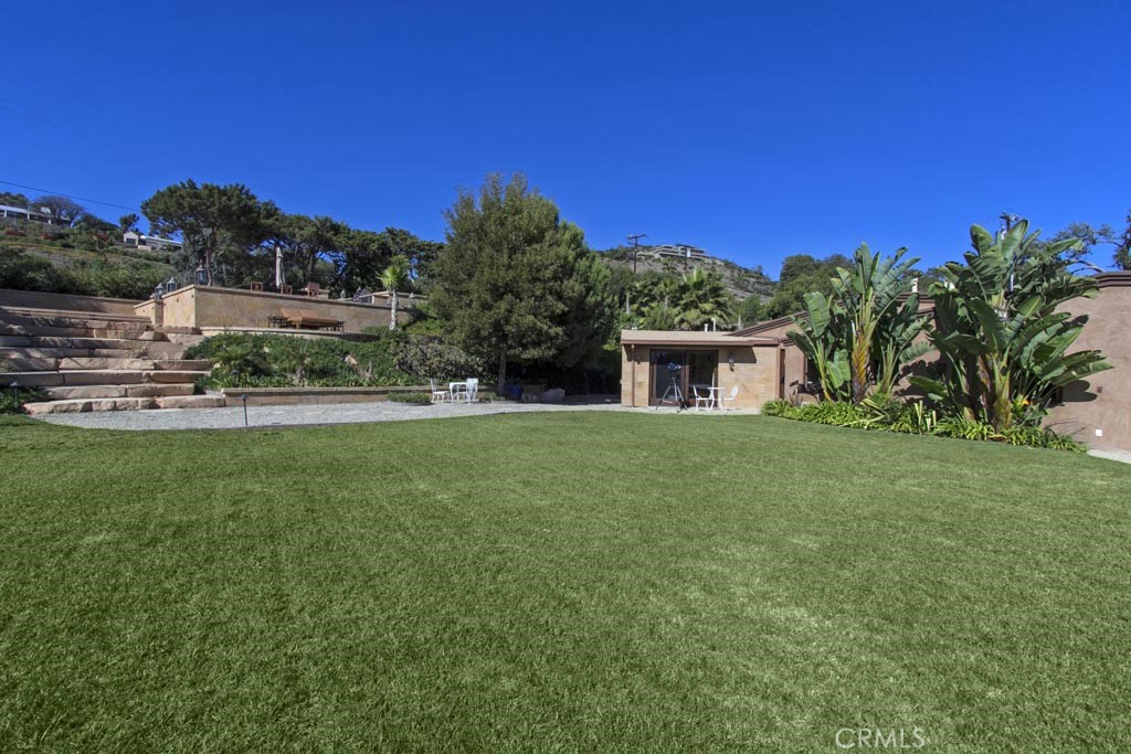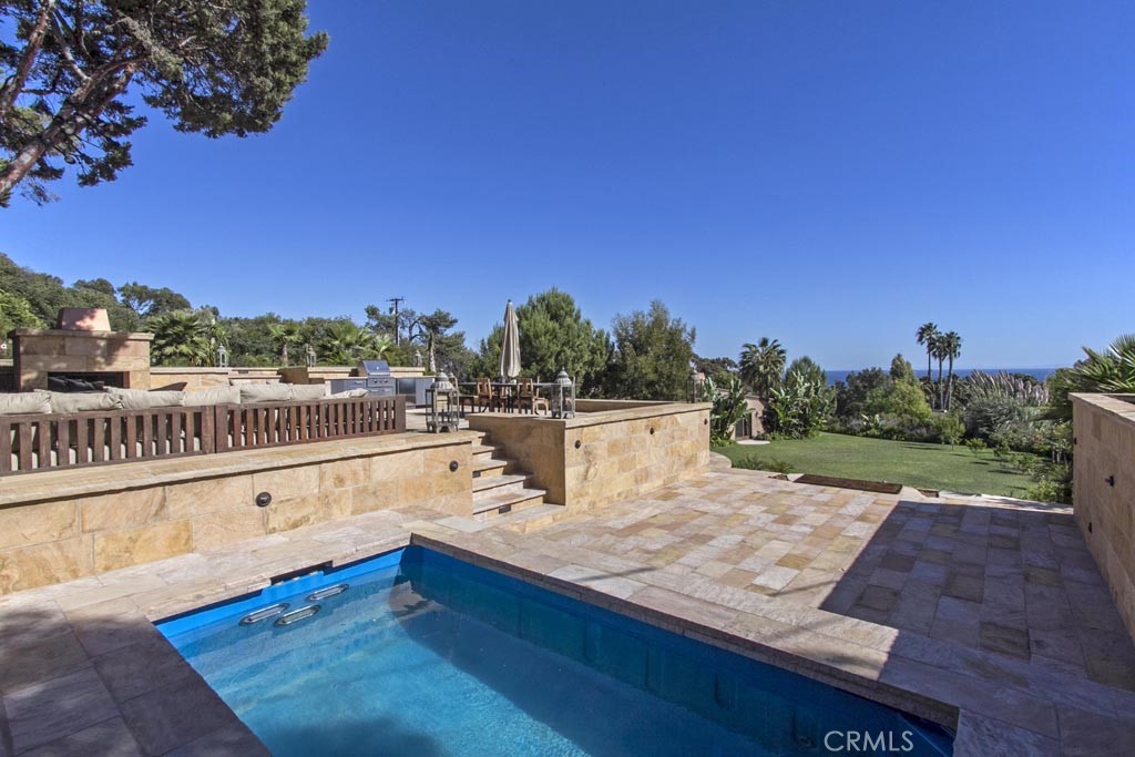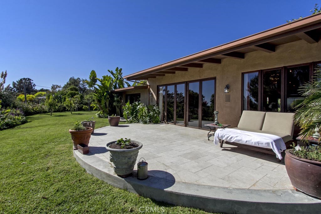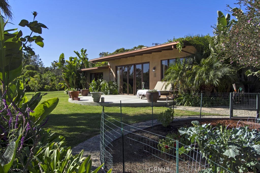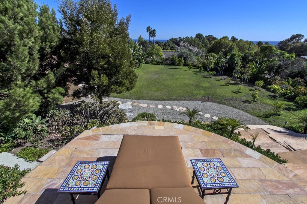 Move-in ready! Ocean View 1 story custom home behind a double-gated entry. Highly upgraded home has 4 bed + 4 bath w/ approximately 3,700 square feet. The vast 1 acre property boasts ocean views, lush landscaping, fruit trees, organic garden, a huge grassy area overlooking the Pacific, & massive stonework surrounding the spa, BBQ center, & party deck w/observation area. Enter onto the stone floors & into the great room w/stone fireplace, built-in book cases, & flat screen TV w/surround sound, all under high wood-beamed ceilings & open to the custom & remodeled cook's kitchen w/professional range, pot filler, Sub Zero professional refrigerator/freezer, stone counters, mosaic tiled backsplash, wine fridge, & center island. Bi-fold doors in the great room invites ideal indoor/outdoor living. The master suite features ocean views, a warm & inviting fireplace w/flat screen TV above, French doors leading to the yard and spa, a large sitting area with built-in desk and bookshelves, and a remodeled master bath with a European-styled enclosed steam shower and bath combination. Let’s not forget the custom home theater with surround sound and a lofted viewing lounge. 2 of the bedrooms are presently set up as a music studio & control room but can be easily restored as bedrooms. Stunning!