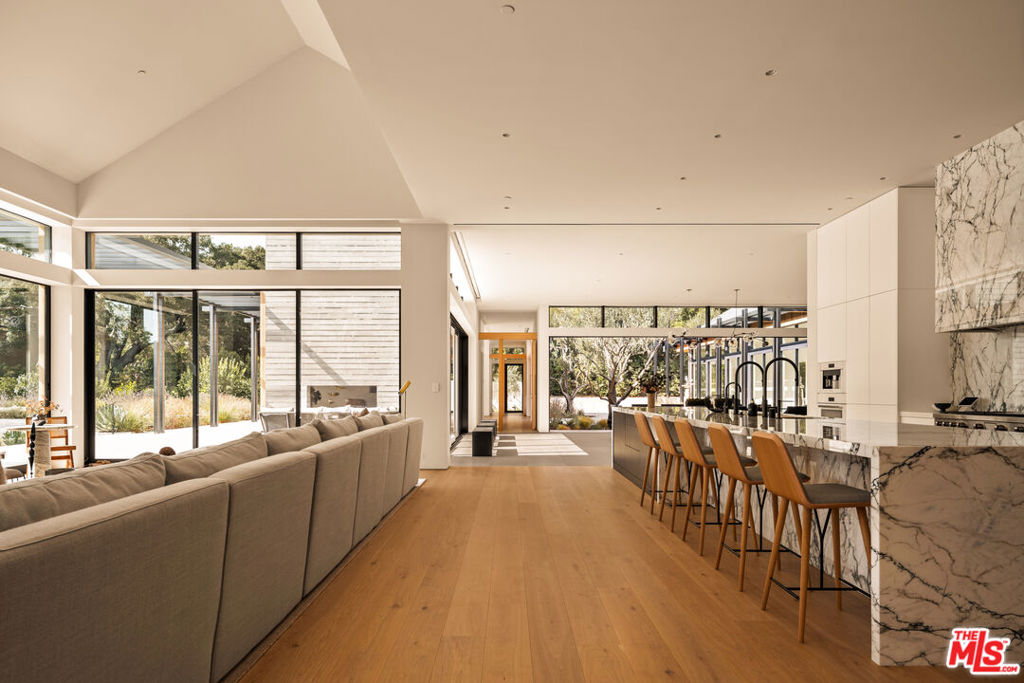 Sited on over 2.2 flat acres in prime Ojai Valley, The Shippee Estate is a rare opportunity to own a newly constructed architectural farmhouse compound featuring the highest level of finish and design in a uniquely serene setting. A product of 4 years of meticulous design and building by one of the country's most prolific builders, the estate features single-story living throughout its Main Residence, Guesthouses, Cabanas, and Workshops. This private retreat features 12-20ft ceilings, walls of glass, grand scale, perfect for entertaining, hosting, and living on all scales. The grand entry features a 12ft pivot door guiding you into an open-concept living space, with soaring ceilings and walls of glass that frame the surrounding landscape and zen-inspired courtyard featuring olive trees and native landscaping. Natural light floods the interiors, creating a seamless transition from the large public spaces to the grounds and outdoor spaces beyond. Premium materials and finishes are showcased throughout, including wide-plank white oak flooring, sandblasted limestone, imported Calacatta marble, and a chef's kitchen outfitted with professional-grade Miele, Wolf and Subzero appliances. The exterior is clad in warm cedar wood siding, enhancing the home's architectural character and blending seamlessly with the natural surroundings. Lighting and fixtures sourced from renowned designers Apparatus and Rejuvenation, further elevating the home's modern elegance with refined detail. Every element reflects a commitment to quality and craftsmanship, resulting in a residence that is both timeless and enduring. Interior features of the Main Residence include a resort-style primary suite, boutique-inspired walk-in closet, and spa-like bathroom with an additional private outdoor shower and garden. A secondary primary suite features soaring ceilings, cozy fireplace, and a sublime bathroom featuring soaking tub and rainfall shower. Featuring a thoughtful layout, the guest bedroom suites are complete with custom millwork, en-suite bathrooms, and serve as the perfect retreat for family and friends. Perfect for generational living or as the quintessential weekend or seasonal retreat, this is a true compound, featuring a variety of auxiliary structures such as a pool cabana, entertainment pavilion with indoor-outdoor kitchen s, outdoor kitchen, self-contained guest house, expansive studio space and additional detached garages. Primed for any car enthusiast, the home features finished garage spaces for ... cars with the height to support lift systems for additional vehicles. Outdoor amenities include various gardens, spacious patios ideal for entertaining, outdoor kitchen, high-quality and drought resistant turfed lawn, a resort style pool and spa, and lushly landscaped grounds. The property's flat acreage offers versatile potential, while its elevated position ensures year-round views of Ojai's iconic mountain backdrop. Located just minutes from downtown Ojai, residents will enjoy ideal proximity to hiking trails, renowned dining and boutiques, The Ojai Valley Inn, and a thriving arts community. 1225 Shippee Lane is more than a home - it is a refined retreat offering the ultimate in resort-style living in one of the West Coast's best destinations.