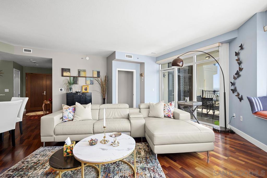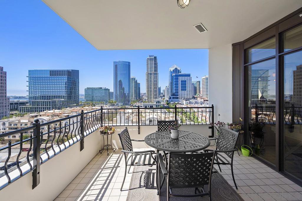 Pristine Park Place Residence with Bay & City Views This 1,233 sq. ft. northwest-facing condo at the prestigious Park Place offers a perfectly designed split two-bedroom floor plan with sweeping views of The residence features a pristine modern chef's kitchen, as well as an expanded island with room for seating, while showcasing the entrancing City and water views that span from Downtown, Coronado, the Bay and beyond to Point Loma. A massive private patio seamlessly extends the living space, creating the ultimate setting for dining, entertaining, or simply enjoying the city lights.The primary bedroom has its own large private patio as well. Park Place residents enjoy resort-style amenities including a pool and spa, fitness center, 24-hour concierge, and secure parking. Ideally located in the Marina District, the property is within a stone’s throw of the waterfront, Seaport Village, The Rady Shell, and downtown’s finest dining and shopping. Pristine Northwest-Facing Residence with Panoramic Views at Park Place with 2 private patios Highly sought after and desirable 1,233 square foot condominium in the prestigious Park Place community offers a refined balance of elegance, comfort, and location. The perfectly designed split two-bedroom floor plan is oriented to maximize both privacy and livability, while showcasing the entrancing City, and Water views that span from Downtown, Coronado, the Bay and beyond to Point Loma. The primary bedroom has its own large private patio. The residence features a pristine, elegantly renovated kitchen, highlighted by an expanded island with room for seating. The seamless flow from kitchen to living space creates an inviting environment for both entertaining and everyday living. A true standout feature is the massive private patio, offering an exceptional extension of the living space. Perfectly positioned to capture the iconic San Diego skyline and coastal breezes, it serves as a rare opportunity for outdoor dining, relaxation, and entertaining. Park Place residents enjoy exclusive access to a collection of luxury amenities, including a resort-style pool and spa, fitness center, 24-hour concierge service, community lounge, and secure parking. Ideally situated in the coveted Marina District, the property is within a stone’s throw of the waterfront, Seaport Village, The Rady Shell, and the city’s finest dining, shopping. This pristine residence presents a rare opportunity to own in one of downtown San Diego’s most distinguished addresses