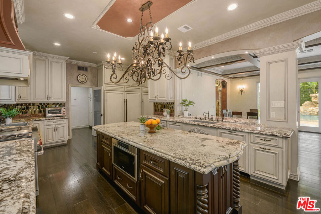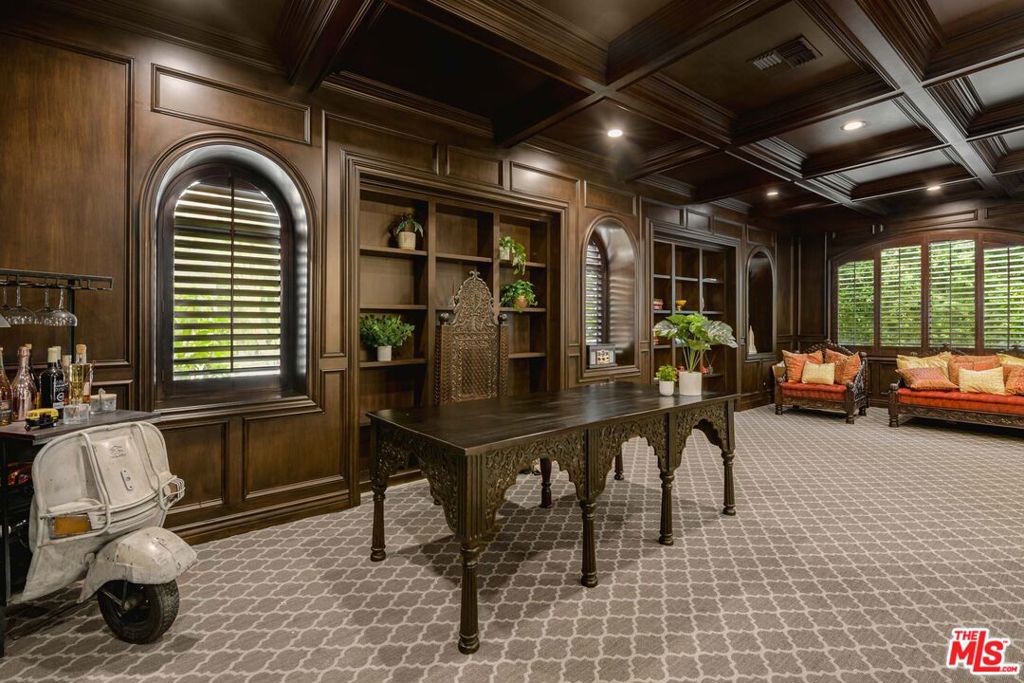 Completely private and gated in the best part of Los Feliz sits this Dramatic Spanish Colonial villa. Encompassing approximately 9,600 square feet on close to half an acre, this resort style estate is the ultimate getaway yet steps from shops and dining in the Village. An abundance of natural light floods the spacious grand living areas with soaring ceilings, a beautifully paneled library, formal dining with 2 way fireplace, spectacular built-ins and a full Chef's gourmet kitchen plus a secondary kitchen. Unwind in the movie theater with private bar or retreat to the Resort style pool and spa with waterfall. The Primary suite is fit for royalty with a sitting area, luxurious en-suite bath with dual showers and soaking tub and enormous walk-in closet - all located on fully gated and secure grounds with private, gated parking for 7 cars. Steps from Restaurants, shops, summer concerts at The Greek Theater and the hiking trails of Griffith Park.