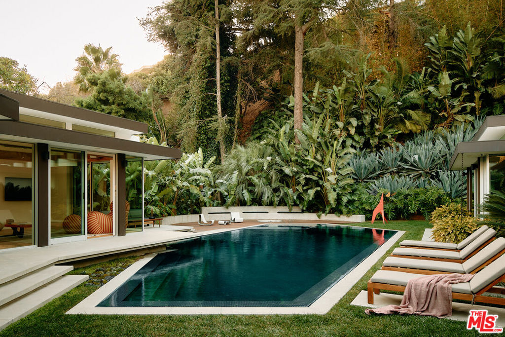 Designed by renowned architect Rex Lotery, FAIA, in 1959, this mid-century masterpiece in the prestigious Trousdale Estates has been meticulously restored to honor its original vision. Commissioned by French actress Corinne Calvet and shaped by a serendipitous collaboration with designer Charlotte Perriand, the home exemplifies Lotery's dedication to mid-century minimalism. While the introduction of modern luxuries exceeds anything Lotery could have envisioned, these enhancements seamlessly integrate with the home's original design, preserving its architectural legacy for generations. Set on over half an acre of exquisite Brazilian modernist-inspired landscaping, the property boasts six bedrooms, eight bathrooms, and a collection of exceptional amenities. The sleek, open-concept kitchen is a study in functional elegance, while the state-of-the-art screening room, temperature-controlled wine enclave, and striking zero-edge pool offer a lifestyle defined by sophistication and comfort. Every detail has been thoughtfully curated to merge historical significance with contemporary luxury. The Calvet Residence stands as an unparalleled expression of mid-century artistry and modern refinement -- a timeless haven in the heart of Trousdale Estates.
