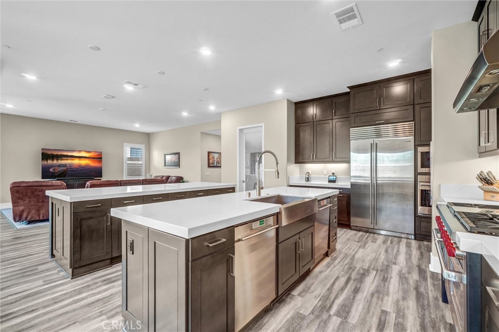 Welcome to 74 Iluna — a stunning luxury residence in the prestigious 24/7 guard-gated community of Altair, Irvine. This upgraded Lennar masterpiece spans 4,468 sq. ft. on a 5,100 sq. ft. lot, featuring 4 spacious bedrooms, 6 bathrooms, and a rare third-floor bonus level — ideal for a home office, playroom, or entertainment space. Every detail is thoughtfully designed, with soaring ceilings, Driftwood vinyl flooring, upgraded carpeting, rich custom lighting, and elegant crown molding. The chef’s kitchen is a showpiece, equipped with Wolf appliances, dual quartz islands, custom cabinetry, and two dishwashers. For the entertainer at heart, the home includes Sub-Zero refrigeration throughout — a main refrigerator in the kitchen, a full-height wine fridge, and a mini fridge in the third-floor wet bar. Enjoy seamless indoor-outdoor living with a California room featuring a cozy fireplace, flowing into a low-maintenance, beautifully landscaped backyard ideal for dining and relaxing. Upstairs, the primary suite is a true retreat — complete with a spa-inspired bathroom, spacious walk-in closet, and two private balconies offering fresh air and elevated views. Each secondary bedroom enjoys its own private or en-suite bath for maximum comfort and privacy. Living in Altair means access to world-class amenities: three sparkling pools, spas, a stylish clubhouse, BBQ areas, tennis courts, lush parks, and miles of scenic trails. Plus, you’re just minutes from the Irvine Spectrum, top-rated schools, shopping, and dining. 74 Iluna is where luxury meets comfort — Welcome Home....