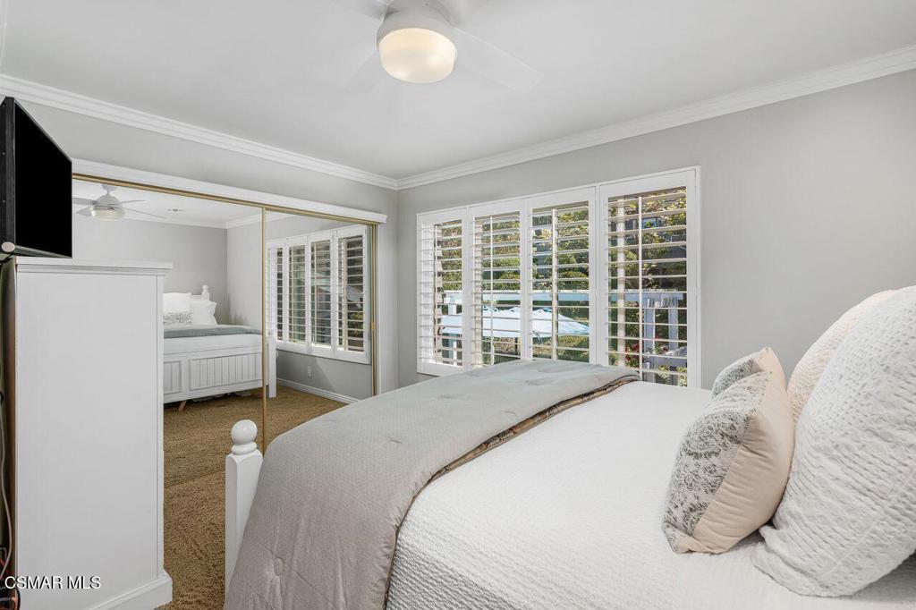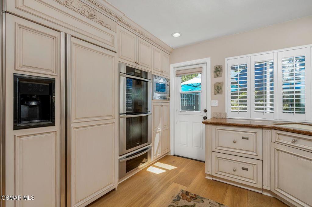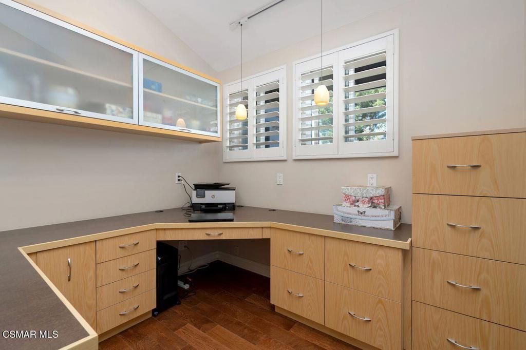 Discover the rare elegance of Club View Townhomes, a private enclave nestled adjacent to the prestigious North Ranch Country Club, where luxury, lifestyle, and location converge. Step into a beautifully upgraded home that exudes warmth and sophistication, featuring rich 9-inch wide real wood plank flooring and custom plantation shutters throughout. The remodeled kitchen is a chef's dream, with sleek granite countertops and custom cabinetry that make both everyday living and entertaining effortless. Originally a three-bedroom layout, this home now boasts a stylish den with a walk-in wet bar which is perfect for hosting or relaxing in style. And here's what truly sets it apart: the only model in the community offering three full bathrooms, delivering unmatched convenience and value. Retreat to the expansive primary suite, complete with a cozy sitting area and a spa-inspired bath adorned with custom cabinetry and luxurious stone finishes. A built-in office in the loft provides the ideal work-from-home setup, blending productivity with comfort.Enjoy seamless indoor-outdoor living with two private patios and a spacious deck off the living room--your personal oasis for morning coffee or evening gatherings. With a separate laundry room and direct-access garage, every detail has been thoughtfully designed for ease and functionality. Located in one of Westlake Village's most sought-after neighborhoods, this home is a rare gem, and, a unique opportunity to own a residence that truly has it all.Don't miss your chance to experience elevated and upscale living in a setting that's second to none.