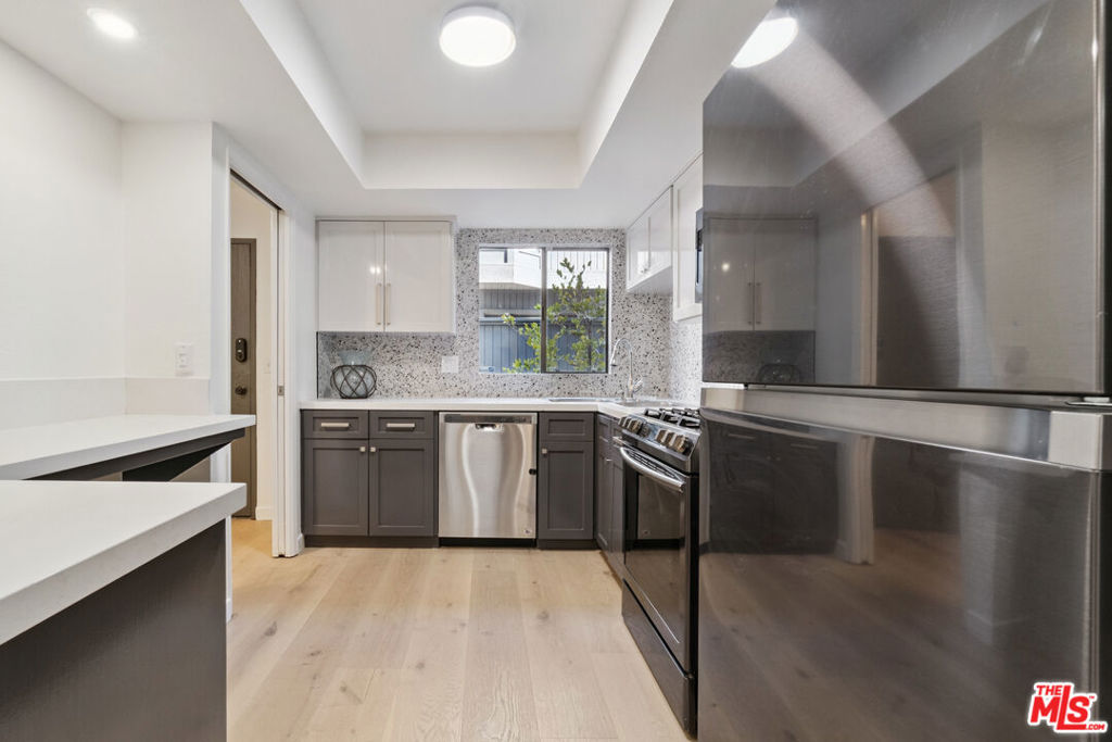 A rare gem in West Hollywood's coveted Norma Triangle, this sleek 2-bedroom, 2.5-bathroom townhome offers the perfect balance of modern design and serene living.The townhouse has been fully updated. A custom bar/wine bar was installed, adding a touch of sophistication and style for entertaining. Every detail has been thoughtfully considered to create a welcoming space that feels both chic and comfortable.Inside, you'll find an expansive open-concept living and dining area centered around a cozy gas fireplace. The recently renovated gourmet kitchen shines with stainless steel appliances and a stylish breakfast bar. Upstairs, both bedrooms feature ensuite bathrooms, with the primary suite offering its own fireplace and a true sense of retreat.Additional highlights include in-unit laundry, central AC/heat, LED recessed lighting throughout, and community perks like a heated pool and two tandem underground parking spaces. Best of all, the location can't be beatjust moments from the San Vicente Bungalows, Petit Ermitage, Pavilions, and West Hollywood Park.This is a rare opportunity to own a fully updated, stylish townhome in one of West Hollywood's most desirable neighborhoods. Can come partially furnished: Flat panel TV; Dining table & chairs; patio bistro table & chairs; brand new King bed frame/mattress. Disclaimer: Virtual/AI staging in some listing photos.