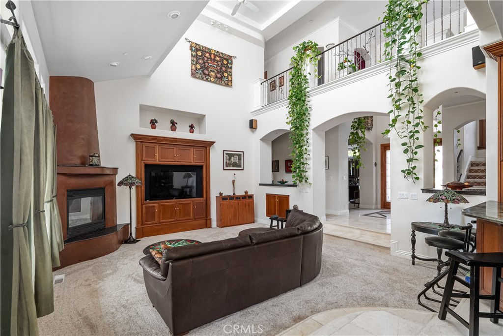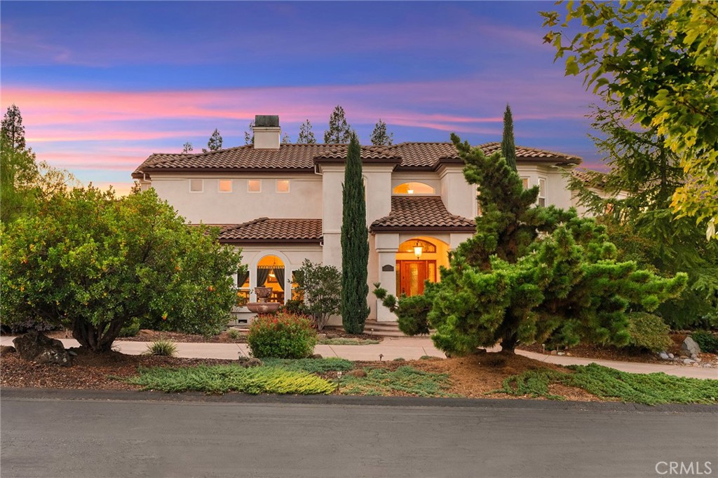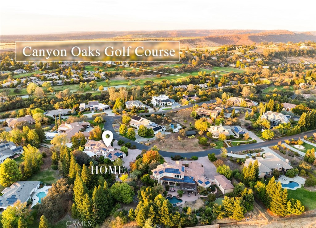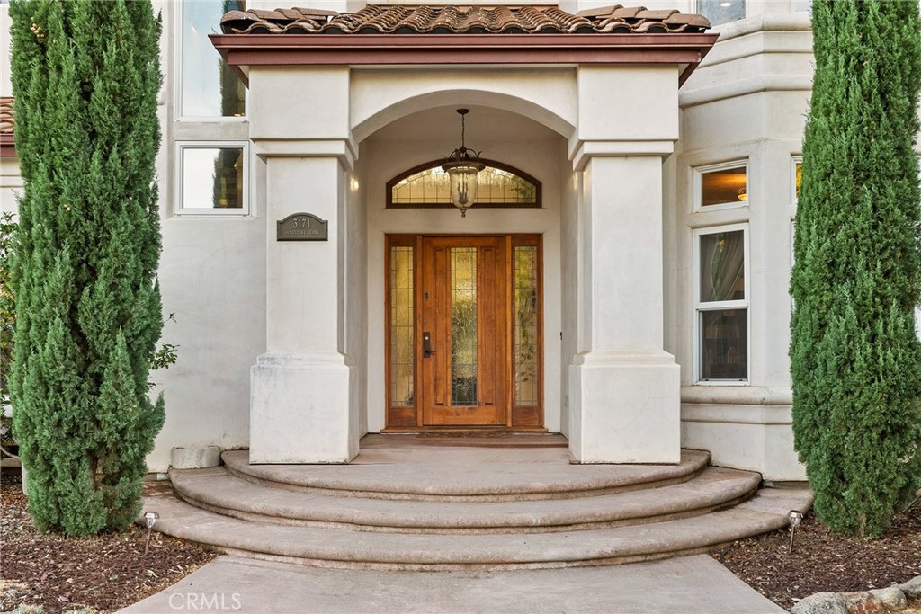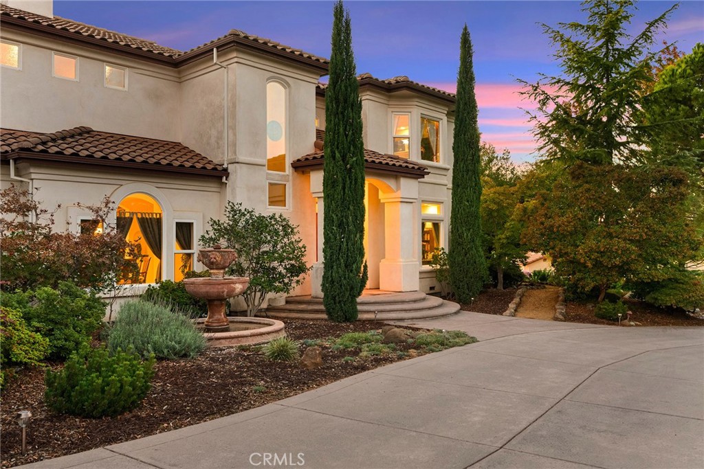 Welcome to a truly remarkable estate within the highly sought-after gated community of Canyon Oaks. Nestled on a private cul-de-sac on a sprawling one-acre lot near the entry gate, this Spanish-inspired residence showcases breathtaking landscaping and elegant design elements throughout. Step through the grand entryway into a home that exudes sophistication, with arched walkways and expansive windows that flood each room with natural light and offer beautiful views of the meticulously crafted grounds. The living room is an entertainer's dream, boasting soaring high ceilings, a cozy fireplace, and seamless flow into a gourmet kitchen. Here, you'll find luxurious granite countertops, double ovens, stainless steel appliances, an island and peninsula, plus a charming dining nook. Additional features on the main level include a climate-controlled wine storage room, two guest bedrooms, two guest bathrooms (one with a relaxing sauna shower), a formal dining room, and a cozy library with its own fireplace. Ascend the stunning wrought iron staircase to a second-floor terrace that overlooks the main living area. The upstairs media room provides a versatile space for entertainment or relaxation. The primary suite is an expansive retreat, featuring a fireplace, skylights, a private reading area, a balcony with scenic views, and a massive walk-in closet. The luxurious ensuite bathroom offers a soaking tub, walk-in shower, double sinks, and a vanity area. Upstairs, you’ll also find two additional guest bedrooms and a full guest bathroom. The backyard is an absolute oasis with a lush lawn, a stunning pool, a serene koi pond with a flowing stream, a hot tub and outdoor shower, and a garden area surrounded by mature fruit trees. This dream yard is perfect for both relaxation and recreation. Other premium amenities include an on-demand water heater, an EV charger, 50 owned solar panels with backup batteries, three HVAC units, a whole-house vacuum system, extensive storage space with both basement and attic areas, and an oversized three-car garage. This home truly has it all – an unparalleled blend of luxury, privacy, and functionality.