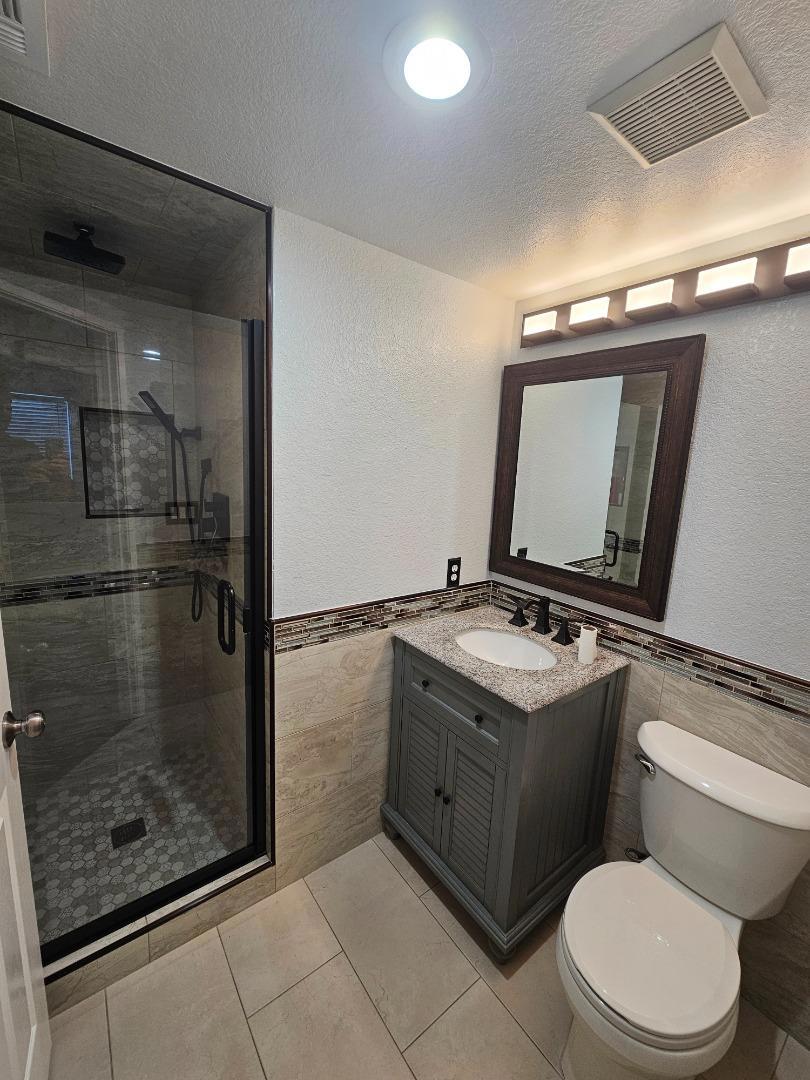 Beautifully remodeled 2-story home featuring freshly painted interiors, Italian tile bathrooms, upgraded kitchen with custom cabinetry, and new modern lighting throughout. This home is equipped with fully paid solar panels for both the house and pool, offering major energy savings. Enjoy a brand-new pool with color-changing lights and a recently installed HVAC system for year-round comfort. The floor plan includes one bedroom and full bathroom on the main level, perfect for guests or multigenerational living. Additional highlights include a spacious 3-car garage and ample natural light throughout. Move-in ready and designed with quality finishes inside and out.