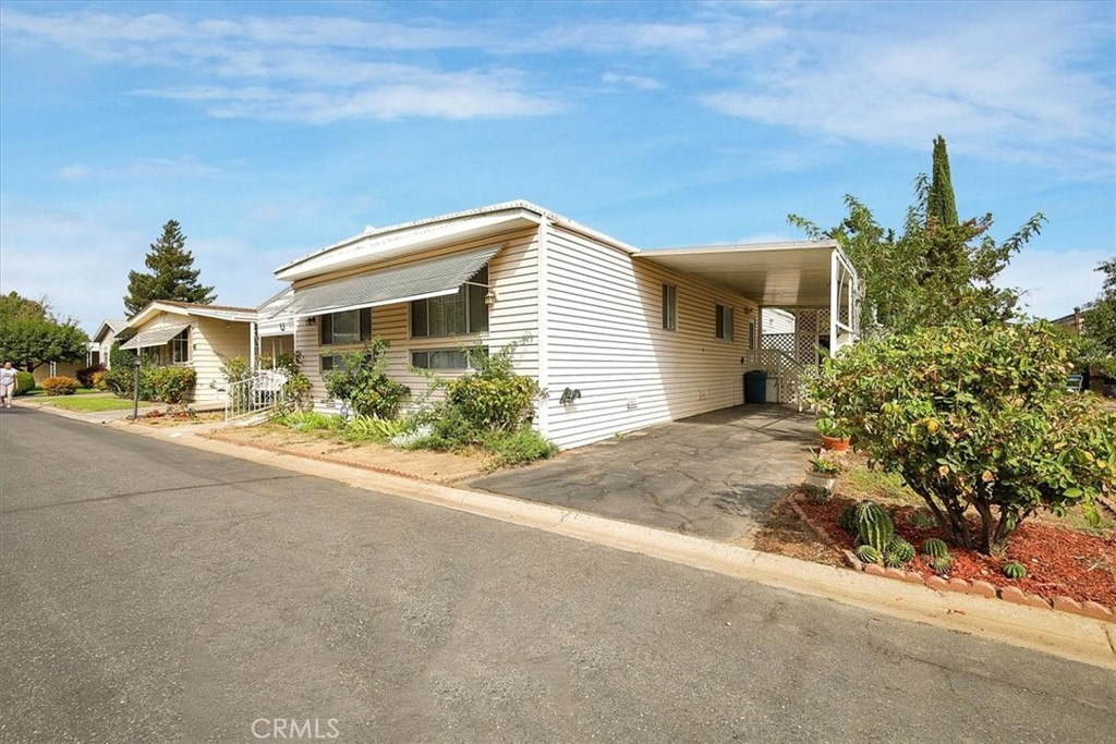 55 and older senior mobile home park awaits you! with a little elbow grease this 2 bedroom 2 bathroom mobile home could shine. Separate living and family rooms, formal dining room, central heat and air, dishwasher, gas stove top, double oven, covered patio, covered one car parking off street with a shed. Community features a pool and clubhouse! Buyer must qualify with the park
