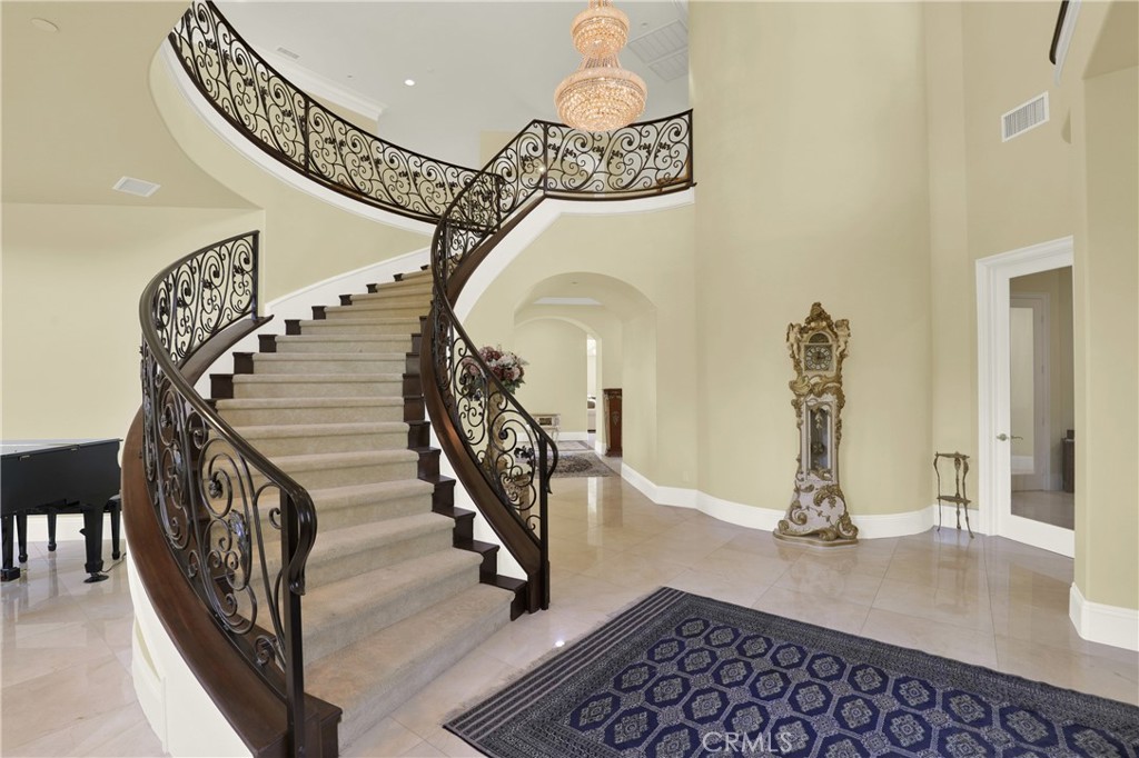 Exquisite Riverside Estate in Alessandro Heights – A Private Paradise Awaits Welcome to your own piece of paradise nestled in the prestigious White Gate community of Alessandro Heights, one of Riverside’s most sought-after neighborhoods. Tucked just off Overlook Parkway, this grand estate offers over 8,800 sq ft of luxurious living space, plus a private casita perfect for guests or multi-generational living. From the moment you step through the front doors, pride of ownership is evident throughout. Enter into a stunning grand foyer featuring a dramatic spiral staircase, Italian marble floors, and soaring cathedral ceilings adorned with opulent chandeliers. The formal living room, anchored by a stately fireplace, flows seamlessly into the elegant dining room, both appointed with custom Italian furnishings that evoke timeless sophistication. An arched hallway leads you to the heart of the home: a massive family room with a second fireplace, built-in bar, and a sunlit breakfast nook that opens to the lush backyard. The chef’s kitchen is a dream come true, equipped with dual islands, Monogram appliances, gleaming midnight sparkle granite countertops, and an abundance of custom cabinetry — perfect for both everyday living and grand-scale entertaining. The first floor also boasts a secondary family room for private gatherings or use as an additional bedroom, a spacious office with dual entry, a large laundry room, and a versatile bonus room just off the garage. Dual staircases provide easy access to the expansive second level, where you’ll find four ensuite bedrooms, including a showstopping primary suite with its own kitchenette, a spa-inspired bathroom with an oversized soaking tub, and a massive walk-in closet. Also, Furniture can be discussed with terms. Outside, the fully gated estate includes a private security gate, expansive driveway with ample parking, and an oversized garage—each bay with its own dedicated storage room. The meticulously landscaped backyard is an entertainer’s dream with multiple covered patios, a fully-equipped outdoor kitchen with BBQ, sink, fridge, and generous counter space, ideal for hosting events or relaxing with family. Descend to your own resort-style pool with beach entry and water features, all set within a tranquil, private setting. Call today to schedule your private, pre-approved tour!