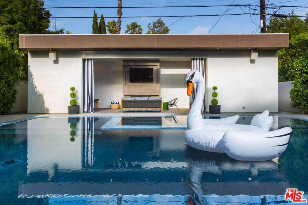 Available fully furnished and turnkey for short term, monthly and longer term rentals! Entertain or unwind in a gated, impeccably-decorated, gated, turn-key villa with resort-level amenities. Open plan living and dining spaces with gourmet kitchen include flat panel displays and full-house smart entertainment system that extend onto the grounds of a double-sized lot with expansive backyard POOL, CABANA, FIREPLACE, and BBQ to provide space for family and guests day or night. Retreat to the PRIVACY of spacious second level en suite bedrooms with balconies or stretch out in the generously appointed master suite with walk-in closet and bath. Play human chess, bathe in the sun, or unwind in the jacuzzi under the stars on the versatile rooftop deck with 360 degree VIEWS of Los Angeles and the HOLLYWOOD SIGN. Located a short walk from a large array of diversions on Melrose Ave and minutes from many fabulous destinations, this warm modern masterpiece will sparkle in your memory.