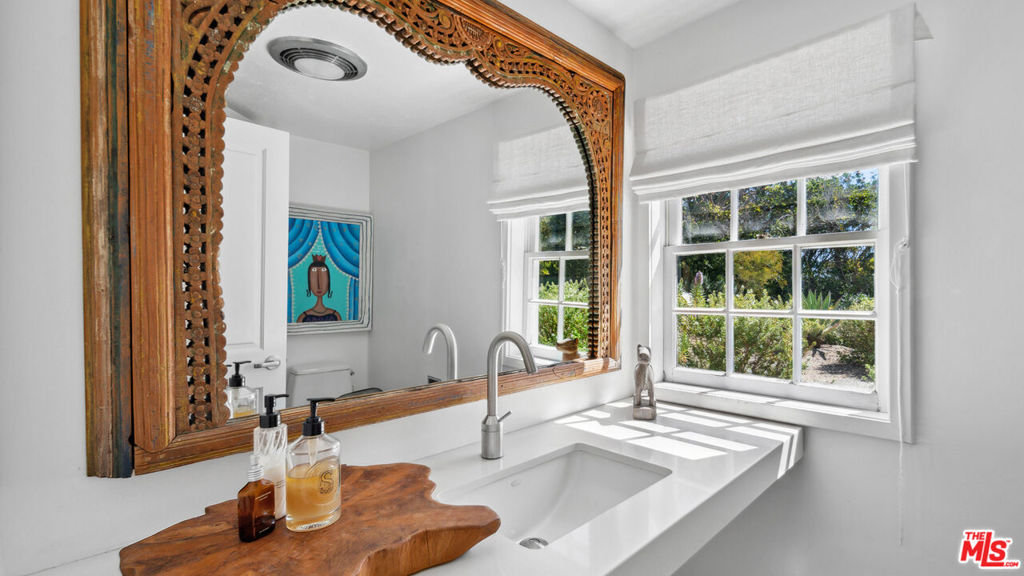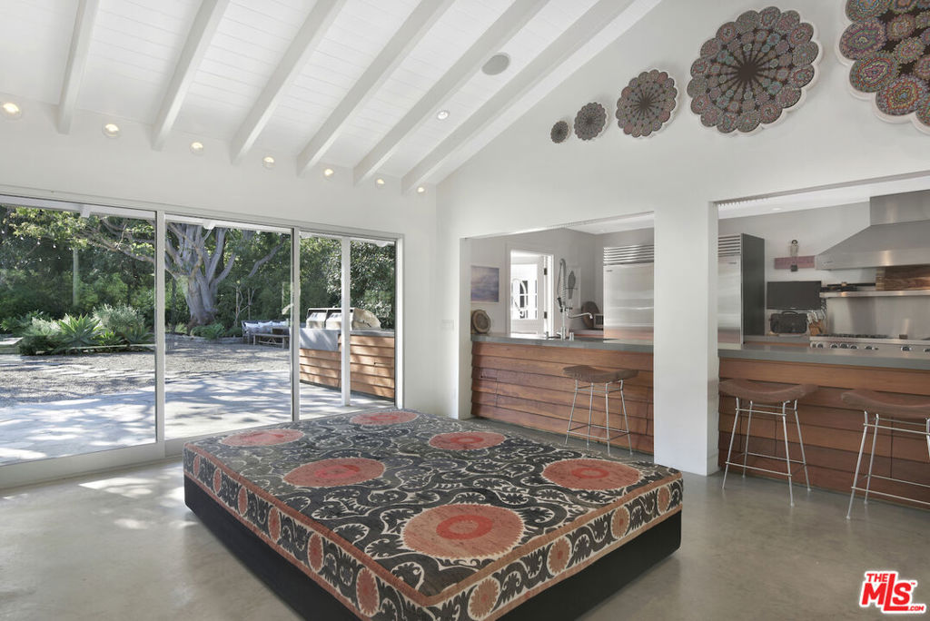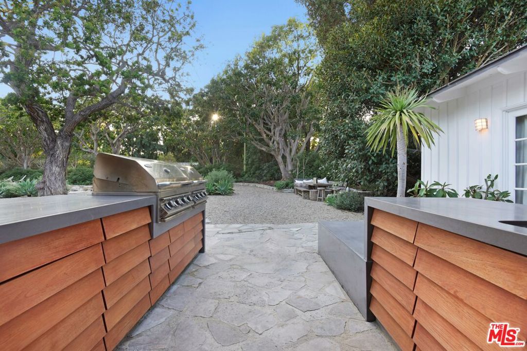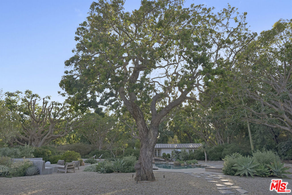 This sensational Point Dume house is set on more than an acre of gated and landscaped privacy. Complete with beach rights, it is a home created for comfortable indoor/outdoor living and sophisticated entertaining. The home is detailed with high wood-beamed ceilings, Fleetwood glass doors and cement floors. In addition to a beautiful living room, the home has a media room, family room with fireplace, a dining area, and a chef's kitchen equipped with a Viking stove and oversized Sub Zero refrigerator and freezer. Large 12-foot sliding doors open the house to the front and back yards. There are three bedrooms and four bathrooms, plus an office/bonus room, with a fireplace, that could be a fourth bedroom. The owner's suite has a fireplace, a wall of glass doors opening to the back patio, and a luxurious garden-view bath with a huge shower, tub, and double sinks. The exquisite grounds are tranquil and harmonious, with a pool and spa, dining area, fire pit, double barbecue island, multiple recreation and seating areas among beautiful trees and plantings, and a detached one bedroom guest house. The home is also equipped with modern updates such as Sonos speakers, Generac auxiliary power, NEST heating and cooling, and security entry. This exceptional property is just a short distance to Riviera 2 private beach access. Available July 1st, 2025.