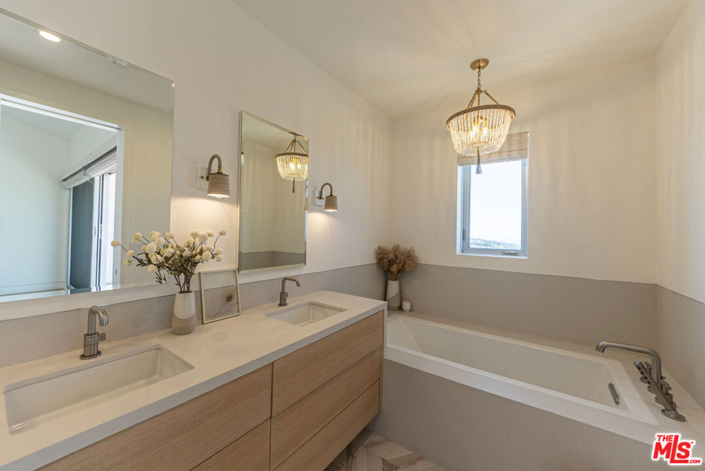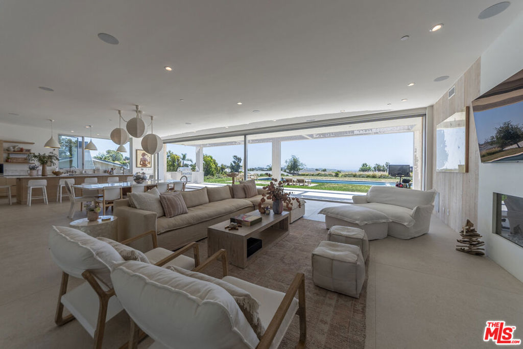 New Construction Completed in 2022. This stunning rustic-modern farmhouse, designed by renowned Doug Burge Architects, is perched above Zuma Beach in Malibu Park with breathtaking panoramic views of the Pacific Ocean. Enter through custom double gates and follow the exquisitely landscaped driveway to a spacious motor court with parking for up to six cars. A dramatic glass pivot door opens to a soaring, light-filled interior where porcelain floors and cedar walls create a serene, sophisticated ambiance. The open-concept living area is lined with pocket doors that span the entire length of the downstairs, seamlessly blending indoor and outdoor living and framing gorgeous ocean vistas. The entertainer's kitchen features terrazzo countertops and state-of-the-art Miele appliances, including three ovens and a 36-inch refrigerator and freezer.Outdoors, enjoy a 20 x 50 pool and spa, an expansive grassy area ideal for a volleyball court or lawn games, a beautiful fire pit for evening gatherings, and a fully equipped outdoor kitchen with Viking barbecue. The main house offers five generous en-suite bedrooms, including a spectacular primary suite with dual walk-in closets and a spa-inspired bathroom featuring ocean views from both the soaking tub and the luxurious shower. A well-appointed media room with a Sony projector, 104-inch screen, and two-tier seating completes the entertainment experience.With its own private gated driveway, the spacious guest house includes a full kitchen, double-sink bathroom, and a large bedroom with walk-in closet perfect for family and friends or use as a pool house. This is California coastal living at its finest. It is serene, stylish, and just minutes from Malibu's best beaches, restaurants, and shops. 13-month minimum term - no exceptions.