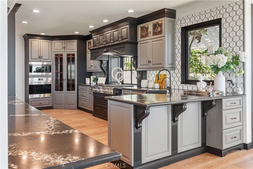 Offering one of the most spectacular and captivating ocean, coastline, and city-lights views in all of Palos Verdes, this romantic English Tudor captures the sweeping Queen's Necklace view from nearly every room. Thoughtfully curated interiors blend old-world character with modern luxury, set against an unforgettable panoramic backdrop. Black wood-grain doors and windows establish a sophisticated tone, while solid hardwood floors run throughout. Special painting techniques, inspired by high-end furniture finishes, add a subtle, layered texture that enhances the home’s refined British atmosphere; elegant, delicate, and full of character. Four elevator access points provide seamless mobility throughout the home. The gourmet kitchen boasts top-tier appliances, while floor-to-ceiling windows create a harmonious flow between indoor and outdoor living spaces. Additional highlights include a spacious gym and an expansive primary suite with a luxurious spa-like bathroom, all positioned to take full advantage of the breathtaking views. From sunrise to sparkling nightfall, this one-of-a-kind residence offers an ever-changing canvas of lights and sea. An exceptional opportunity to own one of the most enchanting view properties in all of Palos Verdes.