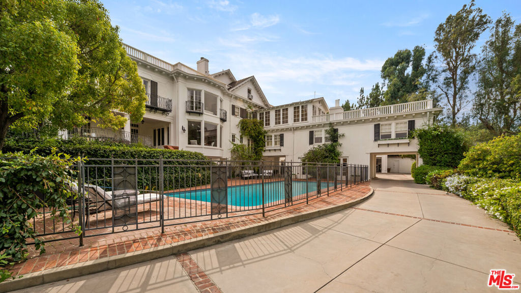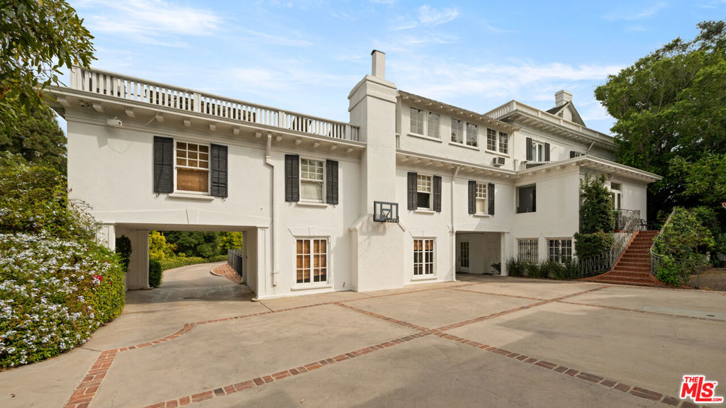 Iconic Beverly Hills Legacy Estate. A Rare Opportunity to Own a Landmark Southern Colonial on Over 1.5 Acres. Set behind gates on one of the most prestigious cul-de-sacs in Beverly Hills, this extraordinary Southern Colonial estate is a timeless masterpiece of elegance and grandeur. Originally built in 1911, the residence is a treasured part of Beverly Hills history, graciously perched on a knoll and surrounded by 1.5 acres of verdant, manicured grounds with scenic treetop views . With over 8,400 square feet of living space, this grand estate seamlessly blends historic charm with modern luxury. The stately front facade is enhanced by a large covered veranda, leading to a sweeping entry foyer that introduces a series of stunning public rooms with soaring ceilings, intricate moldings, and French doors that open to tranquil patios and gardens. Highlights include: A formal living room of exceptional scale, an incredible dining room with seating for 20. A large wood-paneled library rich in character and a gourmet kitchen featuring soapstone counters, custom cabinetry, Sub-Zero refrigeration, 60" Wolf range, double ovens, and dual dishwashers. The primary suite is a private sanctuary with high ceilings, a marble-clad bath, a cozy sitting area, and a fireplace. Additional accommodations include three generous en suite bedrooms, a den with fireplace, a separate staff wing, gym, playroom/bonus rooms, and a large guesthouse, ideal for extended stays or entertaining. Outdoor amenities are equally impressive: expansive lawns, quiet patios, a sparkling pool, BBQ area, and mature landscaping offer an idyllic retreat in the heart of the city. This is more than just a home, it's a legacy. A rare opportunity to own one of Beverly Hills' most iconic estates, rich in history and timeless in appeal.