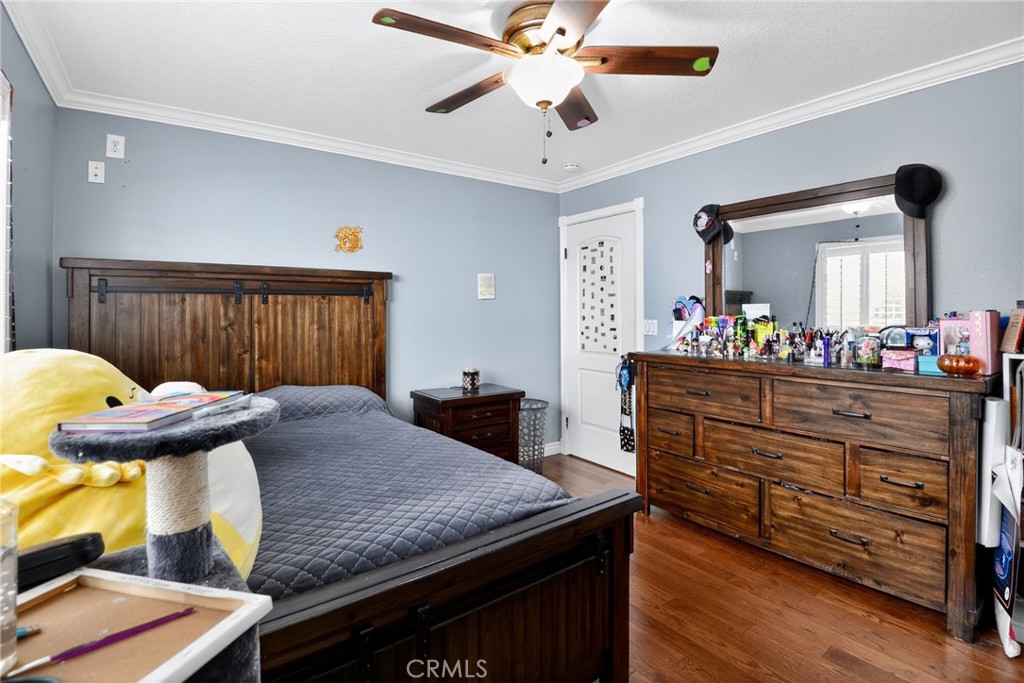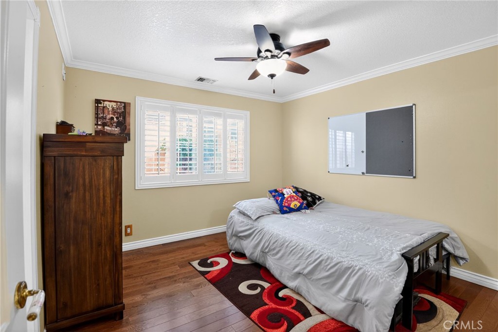 This house has 4 Bedrooms: three of them with engineered wood floor and one with black granite floor like the rest of the house; the owner's bedroom is huge and has a large walking closet and the bathroom has two sinks. There are 3 bathrooms, two of which were fully updated recently and one partially updated. Total living area approximately 2615 sqft, large family Room with fireplace, Living Room, Dining Room and Kitchen with new ovens and a Viking 6 burner gas Range. The exterior includes a patio, pool, BBQ covered area, pergola, some fruit trees, a long driveway for RV or 6 vehicles and tile roof.