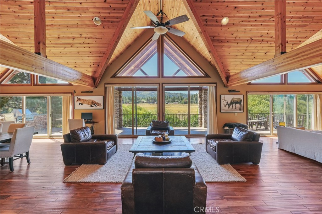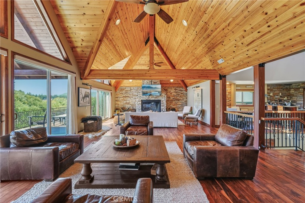 Elegance in Eagles Knoll — Welcome to lakeside living in one of Big Bear’s most exclusive gated communities. This stunning residence is an entertainer’s dream, offering space, comfort, and an unbeatable location just steps from the lake. Boasting 6 bedrooms and 7 baths, this home is designed for gatherings of all sizes. From the moment you enter the grand foyer with soaring beamed ceilings, you’ll be captivated by the wall of windows and sliders framing breathtaking views of the lake and mountains. The expansive decking invites you to relax with a morning coffee or take in the winter glow of Snow Summit’s lights. Outdoors, enjoy evenings by the firepit and built-in BBQ, perfect for year-round entertaining. Inside, the bar and game area create a fun hub for all ages, while the chef’s kitchen delivers ample counter space, cabinetry, and functionality for any occasion. Looking for more room and some down time? Head on over to the spacious family/game room, complete with its own fireplace and bathroom—a perfect retreat within a retreat. After a day of adventure on the lake or slopes, retreat downstairs to 5 ensuite bedrooms (with another bedroom off the primary suite), each offering privacy and a restful, getaway-style atmosphere. Whether hosting guests or enjoying your own sanctuary, this home balances comfort and elegance with ease. The location is unbeatable—just a short walk to the lake, dining, and shopping, with slopes minutes away. Right outside the private gate is a path to the North Shore that connects you to trails, e-biking, hiking, boating, fishing, and more. Offering the ultimate in lakeside luxury with convenience at your fingertips it even has dock rights at the community dock, so bring the boat!