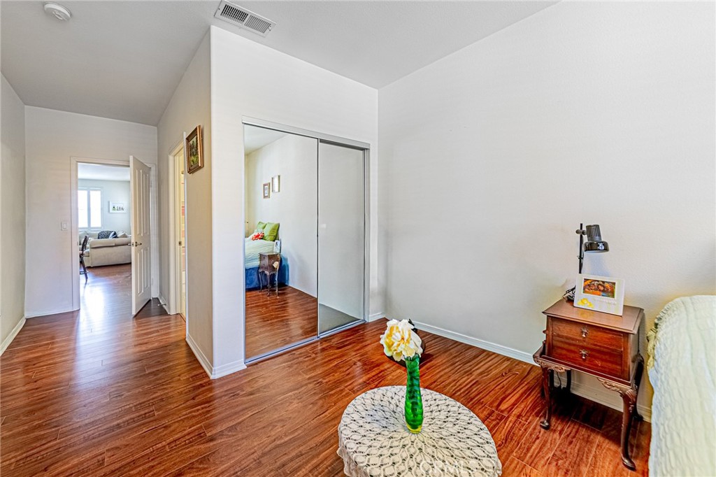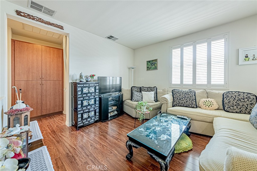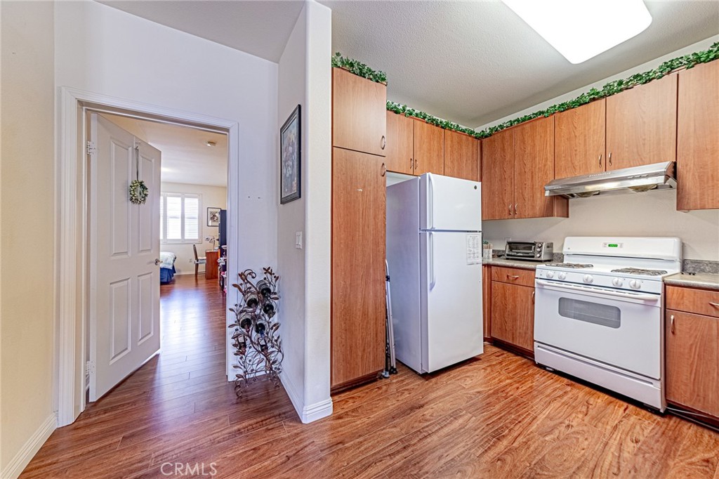 Welcome to this beautifully maintained condo in the desirable 55+ gated community of Walnut Grove. Built in 2005, this single-level residence offers 2 spacious bedrooms and 2 full bathrooms with an inviting open-concept design that maximizes comfort and functionality. The bright kitchen features an eating bar, refrigerator, and seamless flow into the dining and living areas—perfect for everyday living and entertaining. The primary suite offers a generous walk-in closet and a private bathroom, while the secondary bedroom is ideal for guests or a home office. Enjoy the privacy and peace of mind of living in a unique upper-level unit with no downstairs neighbor. Accessibility is made easy with a community elevator. Additional highlights include a large private balcony with serene views, central heating and air conditioning, double-pane windows with plantation shutters, and an in-unit washer and dryer. This home also comes with a convenient detached 1-car garage and an additional permitted parking space. Although detached, the garage is connected by a secured interior stairway shared by only two units, offering both safety and convenience. The HOA covers water and trash services, adding even more value and ease of living. Walnut Grove is an affordable housing community—income restrictions may apply. Residents enjoy access to a sparkling community pool and spa, all within minutes of shopping, dining, and everyday conveniences.