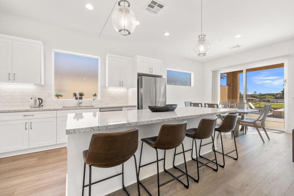 Enjoy stunning Southern Mountain and golf course views from this brand-new home, thoughtfully designed for comfort and style. The property features a sparkling NEW pool and spa, perfect for relaxing or entertaining outdoors.Step inside to a beautiful modern interior, a spacious kitchen with oversized island new stainless-steel appliances opens to an expansive living & dining area complete with a fireplace, a smart screen TV this seamless layout provides direct access to the pool and patio, ideal for sunbathing, lounging, or hosting BBQs.This home offers 3 spacious bedrooms, 2 full bathrooms, indoor laundry and 2 car garage. Unique finishes throughout the property add a touch of sophistication, while the new construction ensures modern amenities and energy efficiency. Experience luxury living in this exceptional, move-in-ready home. Indian Palms offers 27 holes of golf with new management underway with exciting golf course improvements! The clubhouse offers indoor & outdoor dining with bar. Close to all amenities and restaurants & the famous Polo Grounds home to the Coachella Music Festival.Rates can vary pending time of year/month. New pool&spa complete Oct. 15/25