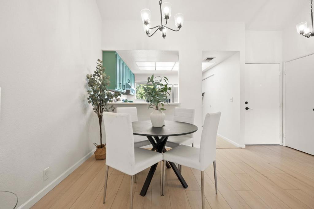 Discover 1050 Summermist Court - a charming upper-floor condo nestled in a serene, gated community in the heart of San Jose. This move-in ready home combines comfort & convenience with modern wood laminate flooring throughout. The spacious living room features a high, vaulted ceiling adorned with a cozy fireplace. Through the sliding glass door leads to your own private patio oasis, prime for relaxation & peaceful views of the beautifully landscaped grounds &soothing water features. The bright & functional kitchen offers modern stainless steel appliances, updated cabinets with ample storage space, & plenty of countertop workspace for prepping your culinary creations. The generously sized bedroom with a spacious closet offers a calm retreat from a long day. As part of a well-maintained community, amenities include a sparkling pool, tennis courts, and serene walking paths for your enjoyment. The HOA covers exterior maintenance, garbage, roof, water, and cable - leaving you responsible for just internet and gas & electricity. In-unit washer and dryer hookups, along with assigned carport parking, provide added convenience.