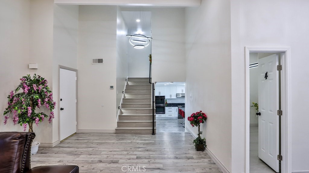 If you are looking for living or a vacation home in Southern California, this is the first choice to be the new owner of this estate just 2 miles away from one of the really famous places in the world, DISNEYLAND. Home has been totally upgraded, with an iron fence surrounding the front yard and RV gate. Single door entry of Cathedral home style with high ceiling and containing a bunch of designated chanticlear & lights, features 4 bedrooms, 2.5 bathrooms, huge living room and dining area. There is one bedroom and 1/2 bath for guests on the main floor; separate private kitchen with a lot of cabinets, tile and vinyl flooring throughout the house. Upstairs has 2 master bedrooms, plus all beautiful blinds & curtains on all windows & doors. The large back yard has a covered patio great for entertaining guests, with super clean and nice landscaping, 2 cars garage with a large driveway for 2 more cars and a RV that can drive through in the backyard. There is an upgraded tankless water heater. Located in the heart of Garden Grove, walking distance to Elementary & Middle School, Garden Grove Central Library, Church, Anaheim Resort, Anaheim convention Center, Great Wolf Lodge Water Park, Coastline College, Costco, Freeways 22 & 5.