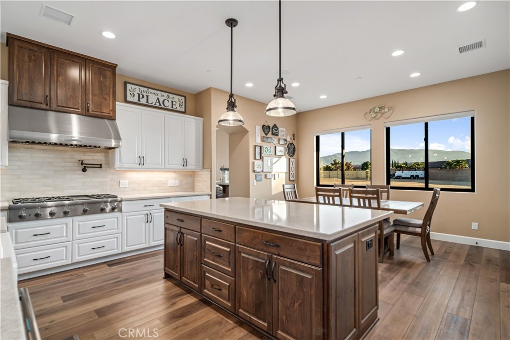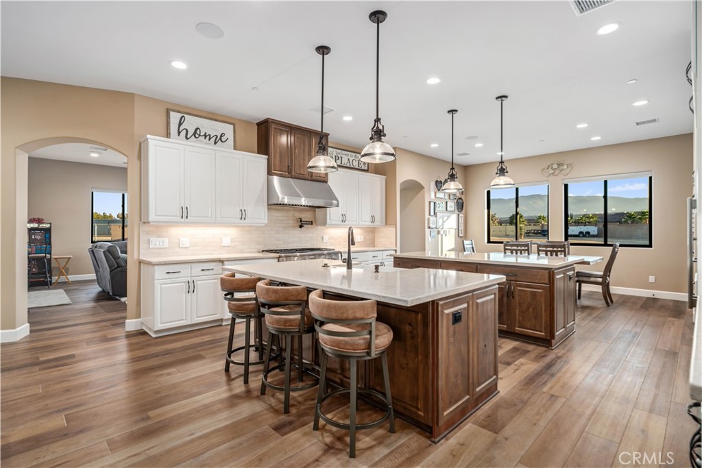 ***LIVE BEAUTIFULLY*** Luxury Desert Retreat with Breathtaking Mountain Views. Built with all the finest materials and details throughout. (COST TO BUILD exceeded $1,853,000). Nestled on a fully fenced 2.5+ acre lot, this nearly 4,000 sq. ft. estate offers the perfect balance of privacy, elegance, and modern comfort. Built In 2021, with 5 spacious bedrooms and 4.5 bathrooms, every detail of this home has been designed for both luxury living and effortless entertaining. Step inside to discover a gourmet chef's kitchen, featuring dual islands, Thermador appliances, custom cabinetry, a 6-burner stove with pot filler, and ample space to create culinary masterpieces. The open design flows seamlessly to living areas filled with natural light through Anderson doors and windows, while motorized blinds provide convenience throughout the home. The primary suite is a true sanctuary, boasting direct backyard access, a private wet bar, dual walk-in closets with barn door accents, and a spa-inspired bath with a therapy jetted tub and a stone-tiled steam shower with dual showerheads. Car enthusiasts and hobbyists alike will love the oversized 4-car garage, offering 1,200 sq. ft. of space. Practical upgrades include regular gas (no propane) and a remarkably low $110/month water bill, making this home as efficient as it is luxurious. Outside, the expansive property provides plenty of room to enjoy the tranquility of the desert, all set against a stunning backdrop of panoramic mountain views. This one-of-a-kind custom built estate is a must see!