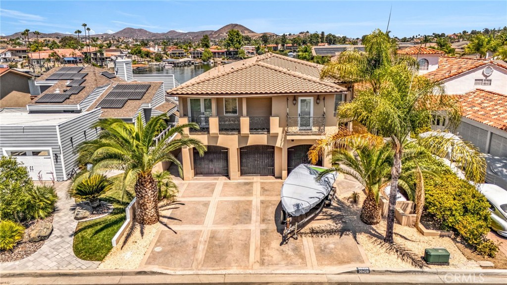 Welcome to 30420 Longhorn Drive, a stunning east-facing waterfront masterpiece located in the prestigious guard-gated community of Canyon Lake, CA. Perfectly positioned on the serene waters of Catfish Cove, this residence offers refined lakefront living with breathtaking panoramic views, exceptional design, and world-class amenities. Spanning an impressive 3,811 sq ft on a 6,098 sq ft lot, this home features a grand open floor plan adorned with soaring ceilings, travertine flooring, and designer finishes. The gourmet kitchen is a chef’s dream, complete with a large center island, Viking appliances, wine cooler, and spacious walk-in pantry—a perfect balance of function and elegance. The luxurious master suite is a true private retreat, offering sweeping lake views, a cozy sitting area, private patio, in-suite fireplace, dual walk-in closets, and a spa-like ensuite with jacuzzi tub and oversized glass shower. Outdoor Living at Its Finest-The resort-style backyard is an entertainer’s paradise, featuring an infinity-edge pool and spa with cascading waterfalls, multiple seating areas, and a private patio with built-in entertainment center. Enjoy a sandy beach area, large palapa, fire pit, and a covered u-dock with hydro lift—ideal for boating, paddleboarding, or simply soaking in the lakefront tranquility. From the moment the sun rises over the water to the peaceful glow of evening, this property offers front-row views of majestic water and mountain vistas, fostering a daily sense of serenity and elevation. Designed for both grand entertaining and intimate moments, it seamlessly blends luxury and comfort. In the celebrated Canyon Lake community—renowned for its privacy, safety, recreational amenities, and natural beauty—this home is more than a residence; it’s a lifestyle. Whether hosting unforgettable gatherings or enjoying quiet reflection by the water, 30420 Longhorn Drive is truly one-of-a-kind.