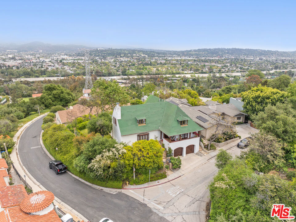 Welcome to a timeless piece of Los Angeles history. Available for the first time in over six decades, this stunning 1931 Tudor Revival home, designed by architect Rollin F. Pearson, sits on a private lot with sweeping views of the Los Feliz Hills, Glendale, and the San Gabriel Mountains.Combining classic English charm with authentic craftsmanship, this two-story residence is a masterpiece of enduring design. From the rich redwood beams and traditional lath and plaster walls to the exquisite original details, the home retains its historic elegance. Step inside and discover beautifully preserved oak tongue and groove floors, stained wood doors, and original light fixtures and hardware. The grand staircase, featuring an original wrought iron railing, is bathed in natural light, as is the rest of the home throughout the day.The elegant dining room is perfect for hosting, complete with French doors that open to an expansive veranda. The living room is a true showstopper, adorned with floor-to-ceiling mahogany paneling, leaded stained glass, and a grand wood-burning fireplace. The spacious kitchen features original tiles and rich stained wood cabinetry, a butler's pantry, and a bar with mahogany countertops. A cozy breakfast room opens to the patio, an ideal spot for morning coffee.Upstairs, three spacious bedrooms offer generous closets, built-in cabinetry, and multiple breathtaking views. The primary en-suite and second bath showcase classic original Spanish tiles and fixtures that have been meticulously preserved. A fourth bedroom and bath on the main floor provides private accommodations for guests or maids quarters.The spacious basement offers potential for a wine cellar or a "bodega," and the lush grounds are dotted with mature oak trees. The flat backyard is a rare find and an ideal space for entertaining or for adding a pool. This is more than a home; it's a piece of Los Angeles history in one of its most desirable neighborhoods.